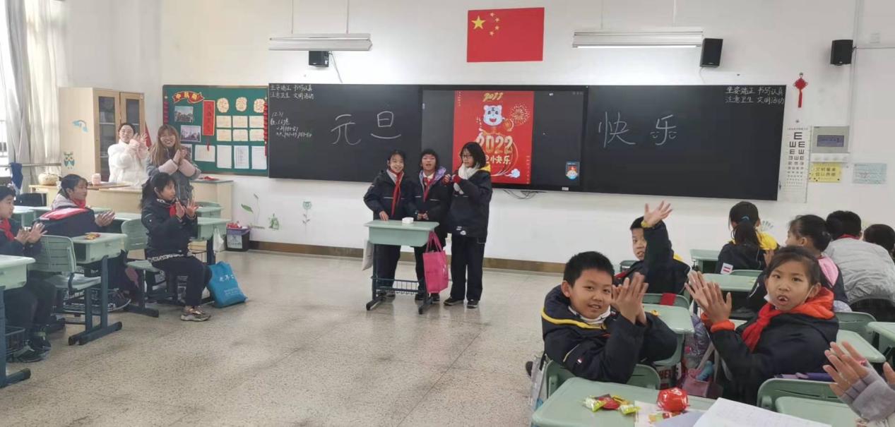 下午,各班级自主开展元旦庆祝活动。瞧!同学们多才多艺、自信大方,他们有的唱歌,有的跳舞,有的演奏乐器,有的说学逗唱,还有的表演花样足球……台下的同学看得目不转睛,津津有味,情不自禁地为表演的同学送去热烈的掌声,场面热闹温馨。