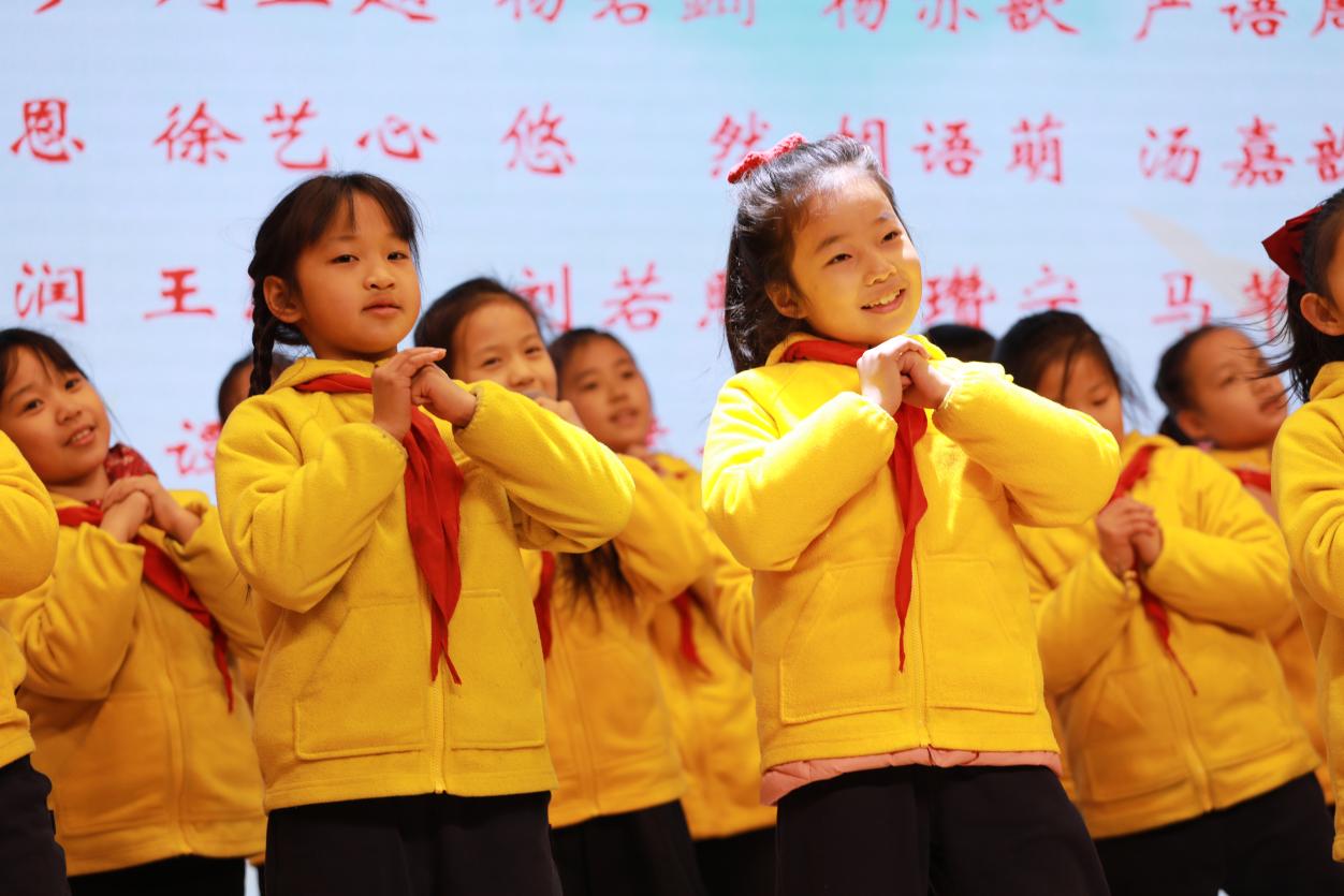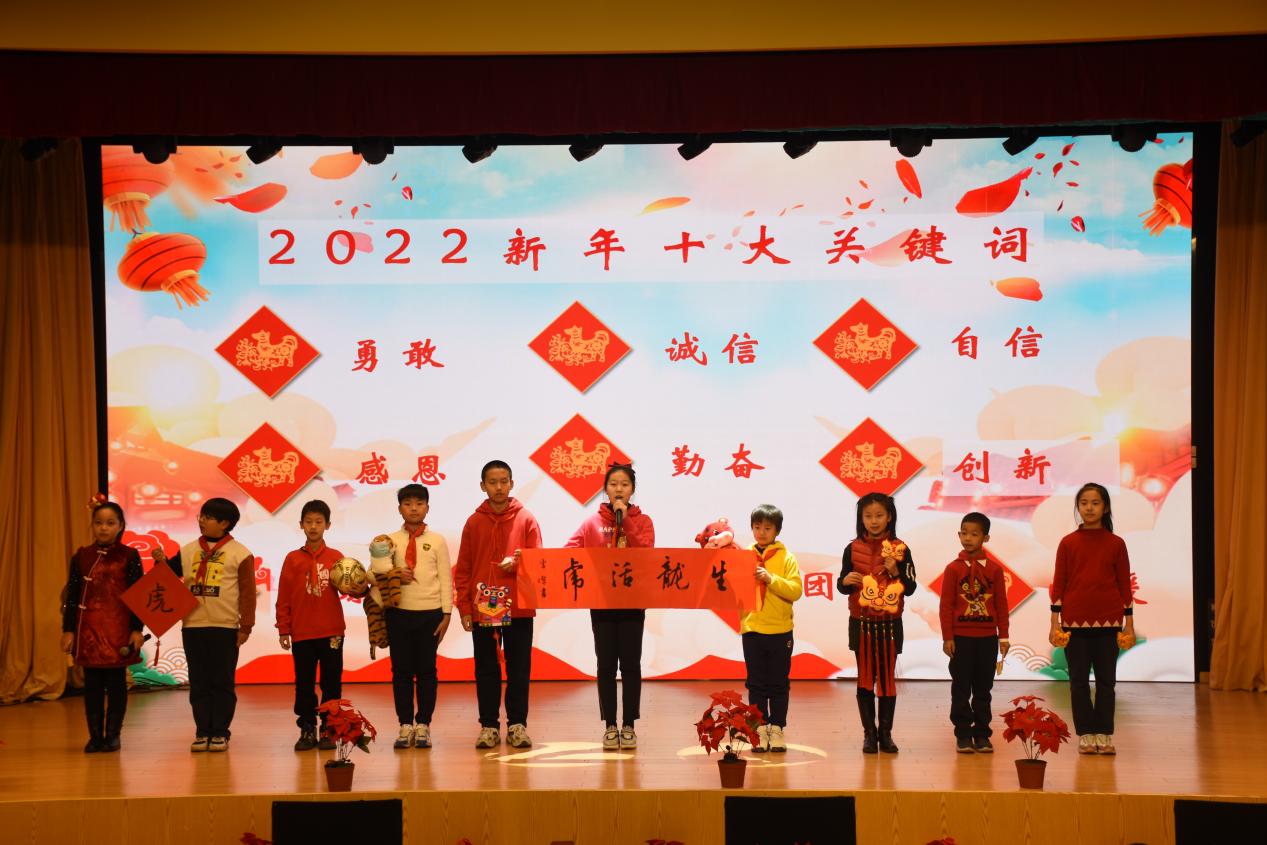 随后,大队委们上台公布了全校师生共同推选出的2022新年关键词: