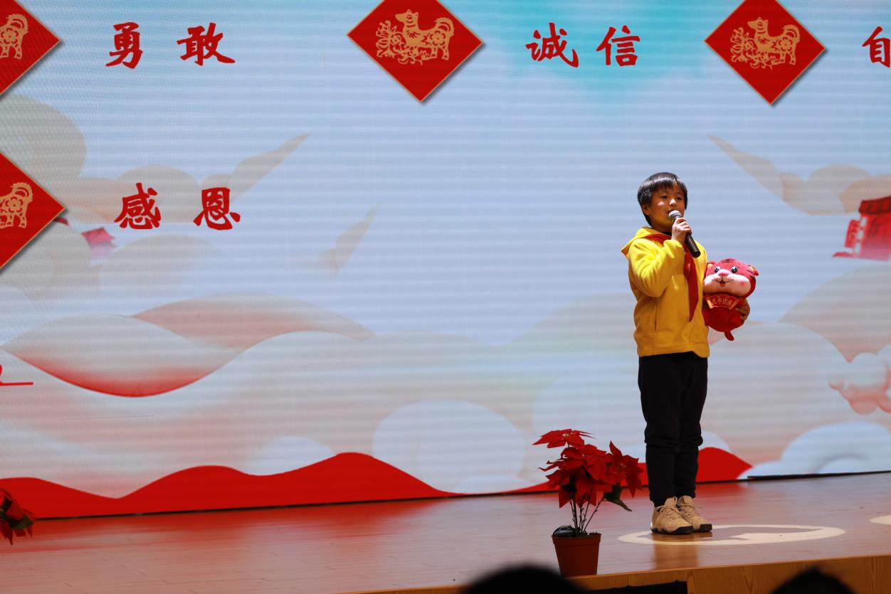 自信:入校后,老师不断鼓励我们要“更自信大方”,学校也给予了我们许多展示自我的平台,外语节、艺术节、科技周、少先队活动等等。在学校的这几年,我们变得越来越自信!今年,我的弟弟也加入了我们这个温暖的大家庭,2022,祝福我们彩虹校园里的每位小朋友都能更自信地快乐成长!——王应嘉