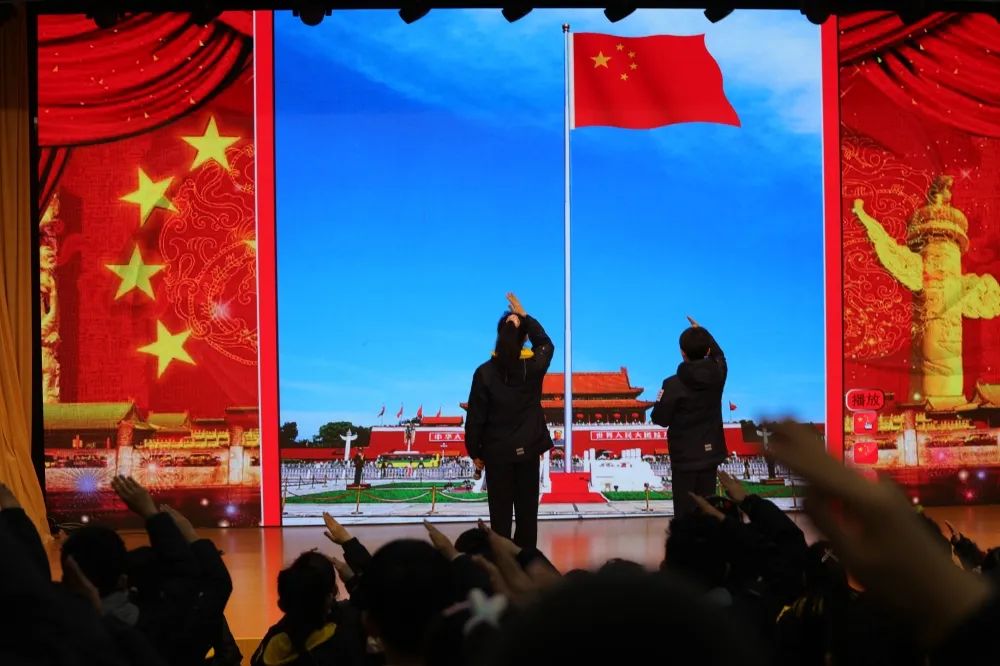 伴随着嘹亮的国歌,鲜艳的五星红旗冉冉升起!