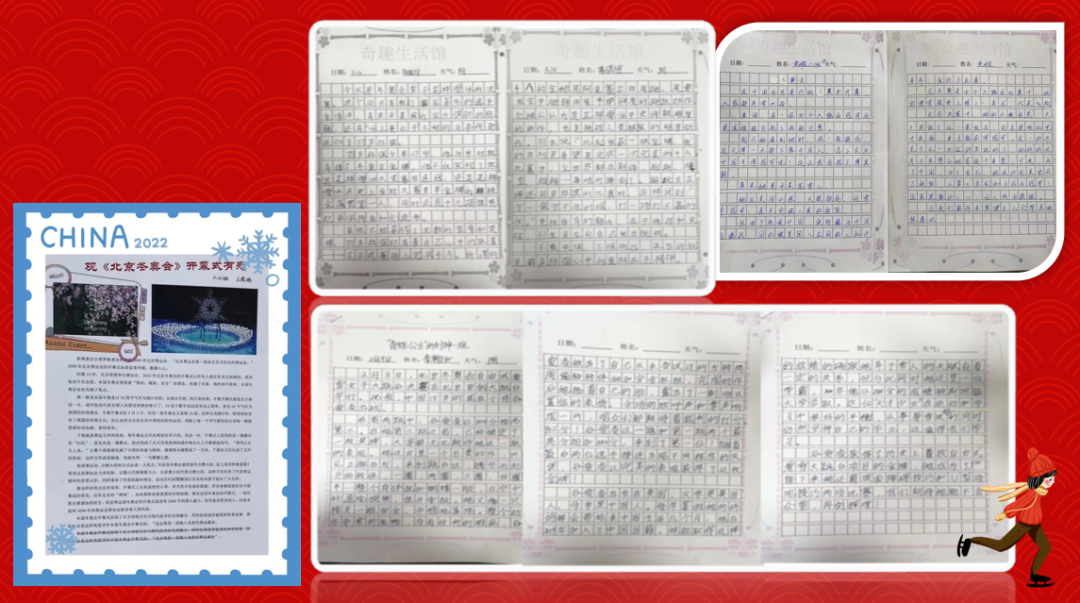 本次北京冬奥会可谓是万众瞩目,举世赞叹。开幕式上,从24节气倒计时到奔腾的黄河之水,从冰立方破冰形成冰五环,从小雪花汇聚成大雪花,无不彰显出中国元素与现代科技的完美结合。运动场上,各国运动健儿更是逐梦冰雪,展示风采,留下无数精彩的瞬间。热爱运动的青奥娃们在观看冬奥赛事的同时,也用自己的方式积极参与到这场盛大的体育赛事中。
