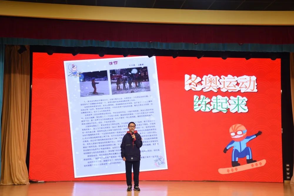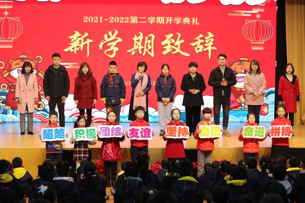 校领导和师生代表上台为本次开学典礼致辞,鼓励全校师生积极弘扬冬奥精神,奋发努力,在新的学期里,立下一个目标,许下一个心愿,用努力和拼搏去实现它,努力做更好的自己,做更好的伙伴,奋进新学期,一起向未来!