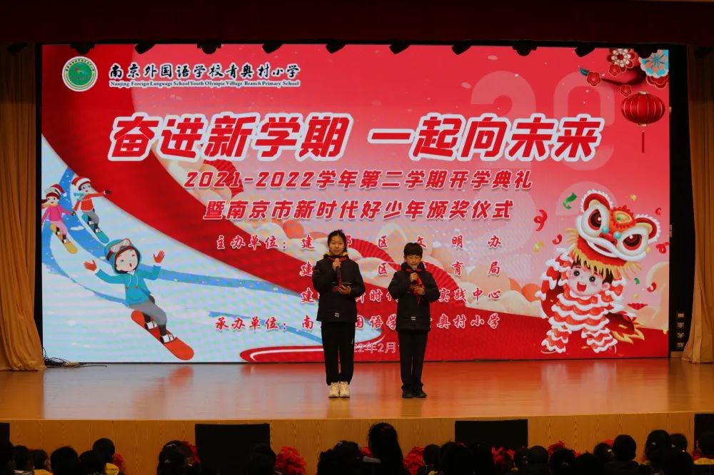 2月14日上午,以“奋进新学期,一起向未来”为主题的南外青奥村小学新学期开学典礼在小剧场以直播的形式举行。