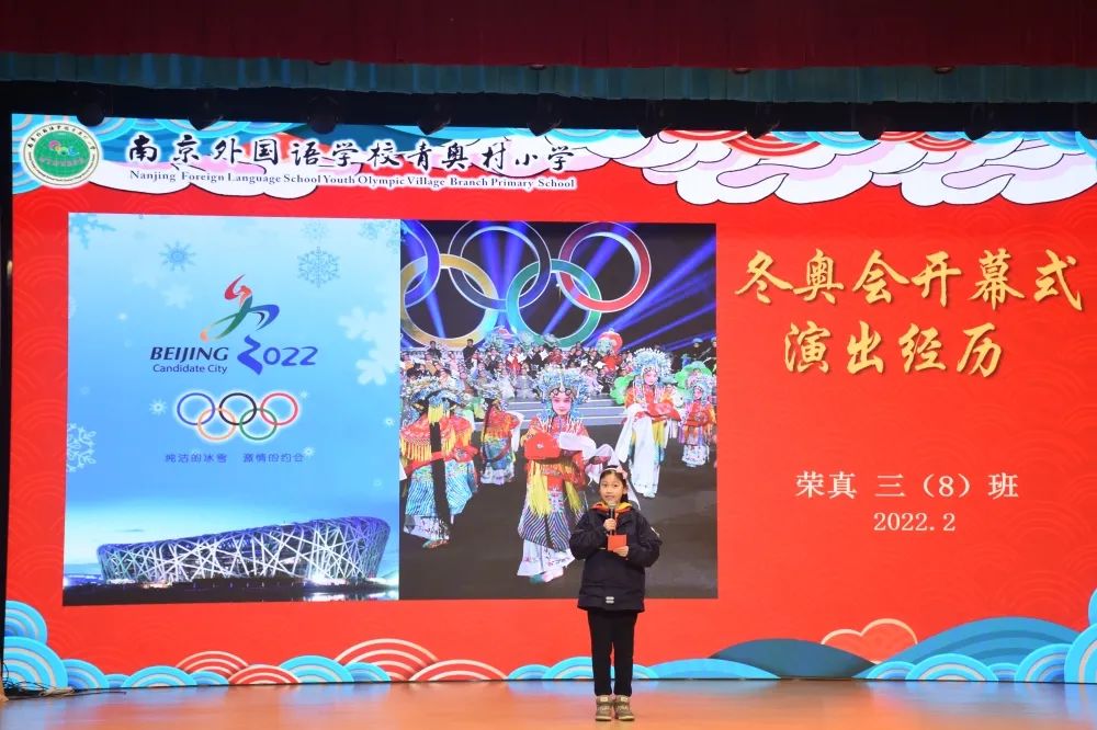 我校三(8)班的荣真同学还亲身参与到开幕式南京分会场的表演,并与全校同学分享了自己这一难忘的经历。
