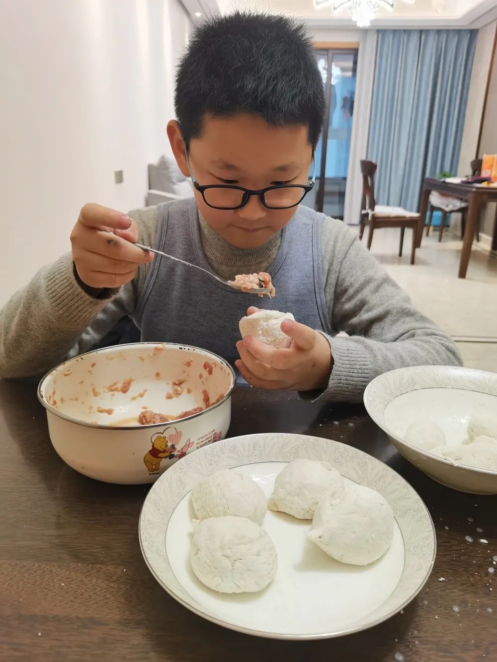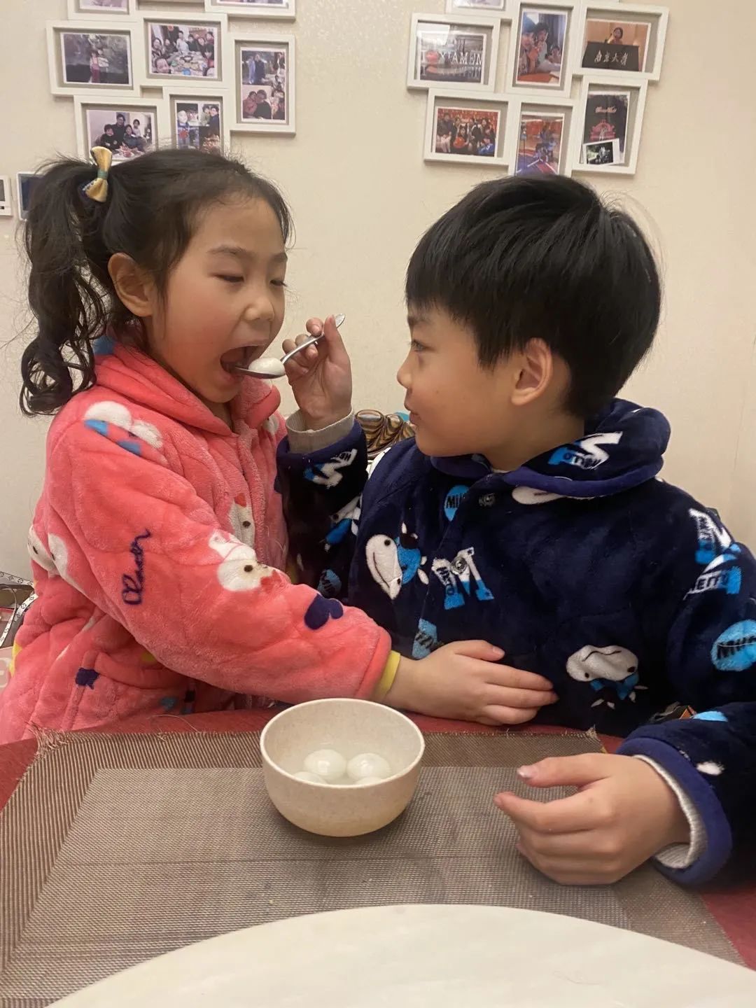 孩子们还和家人一起包元宵。瞧,这一双双小手翻动,指尖轻捻,象征着团团圆圆、和睦幸福的汤圆就做成了,吃着亲手制作的汤圆,脸上笑意盈盈。