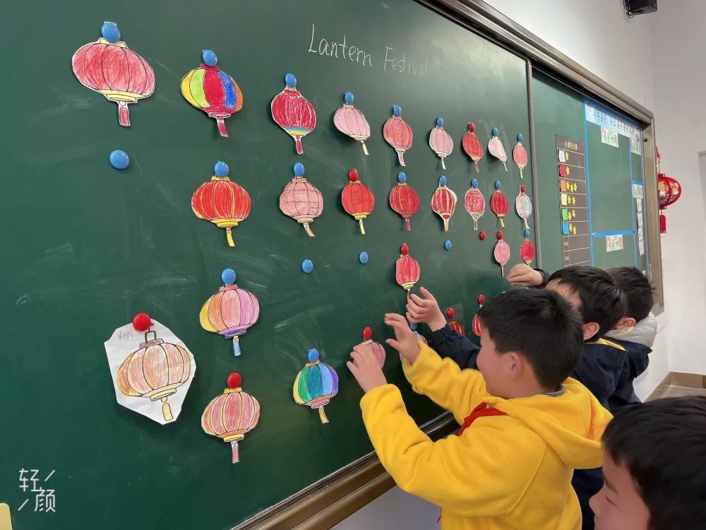 英语课上,师生用英语畅谈元宵节习俗,体会别样的节日风情,还把英文版的灯谜藏在小小的灯笼背后,玩起英语谜语。