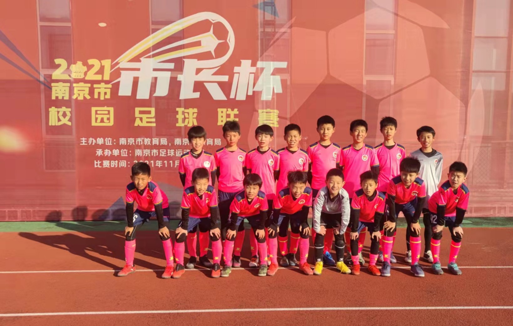 2019年,学校组建校足球队,每天刻苦训练,风雨无阻。在教练和队员的努力下,在全体师生员工的支持下,我校一直保持建邺区校园足球联赛前三名的好成绩,并于2021年代表建邺区征战了南京市“市长杯”足球联赛。2019年获“建邺杯”校园足球联赛乙组一等奖;2020年获建邺区“区长杯”校园足球联赛乙组、丙组一等奖;2021年获建邺区“区长杯”校园足球春季联赛丙组冠军、秋季联赛甲乙丙组亚军。今年2月,在南京市城墙杯足球冠军挑战赛中,我校足球队以全胜战绩夺冠!