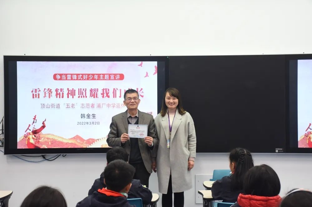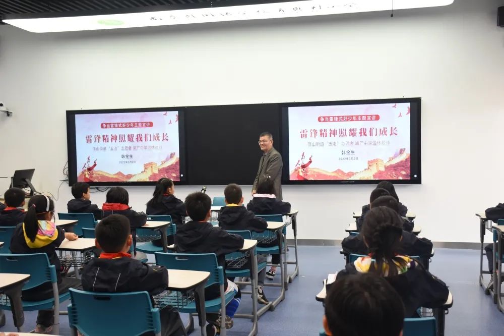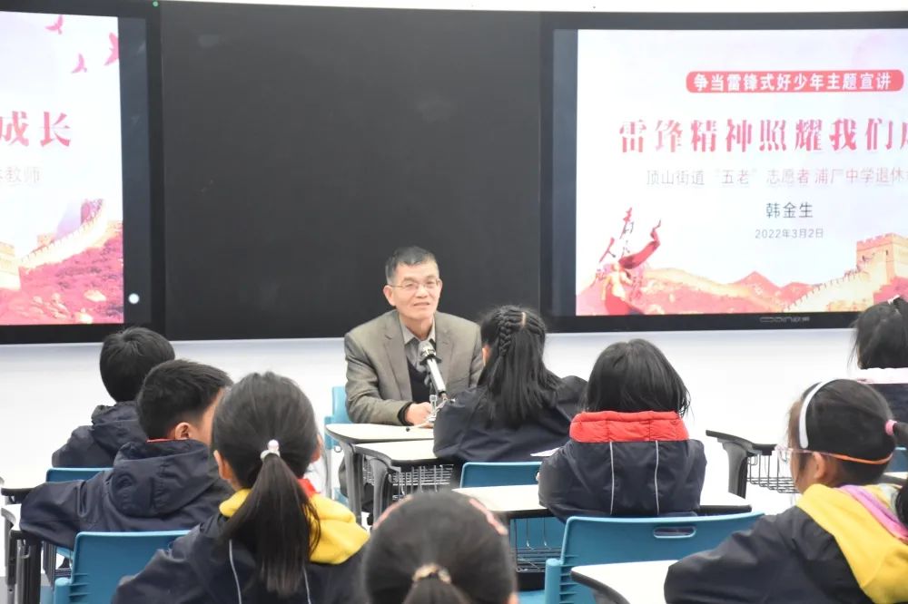 3月2日下午,“五老”志愿者、浦厂中学退休教师韩金生爷爷走进校园,为队员们进行了主题宣讲。