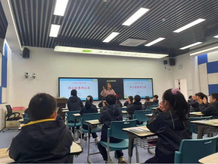 张校由一组口算引入,激发学生思考,从而切入到新授课程,列出算式24×12,重点引导学生理解算理,掌握两位数乘两位数的算法。