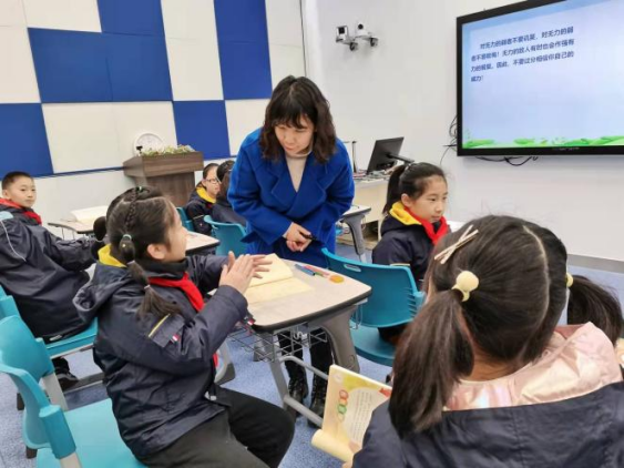 本节课周校打破了英语课堂传统的小组合作方式,将学生按照不同的表达水平、能力和学习需求,分成同质、异质小组,或让学生根据观点和话题进行自由、灵活分组,让课堂呈现出多元交互学习的新样态。文本解读环节,周校基于“大概念”设计阅读任务,再将任务细化成指向不同层次学生能力发展的一个个小任务,激发了学生的思维,丰富了他们对阅读的深度体验,老师提供的支架为每一个学生的高质量地进行语言输出,提供了保障。活动中,我发现孩子们在分组讨论时积极气氛热烈,小组汇报时落落大方、自信满满,在开放、自主的氛围中体验着学习的快乐。可见,课堂教学的质量是与我们平日里每节课、每个环节的精心设计、有效落实,日复一日的坚持训练密不可分的。