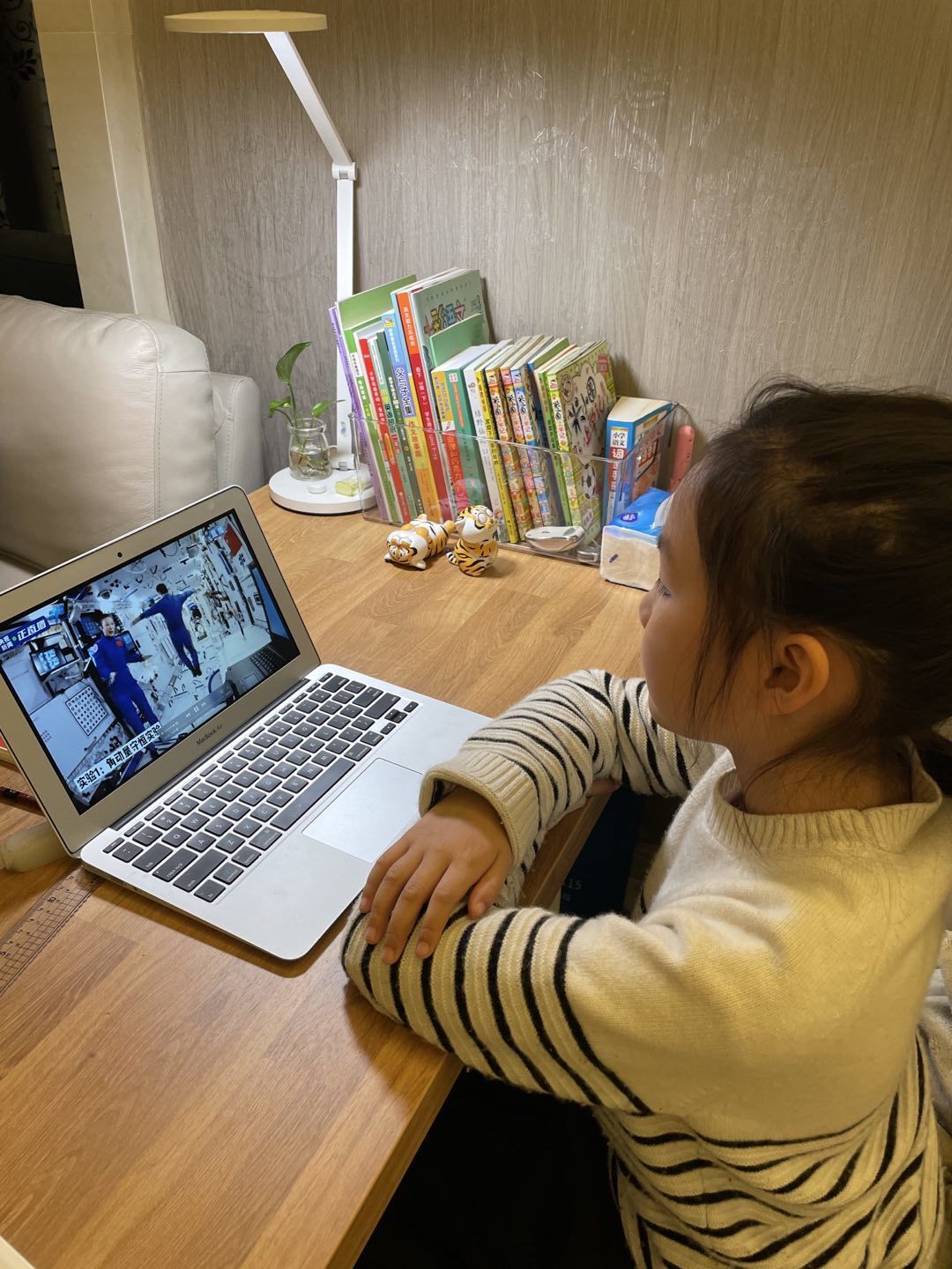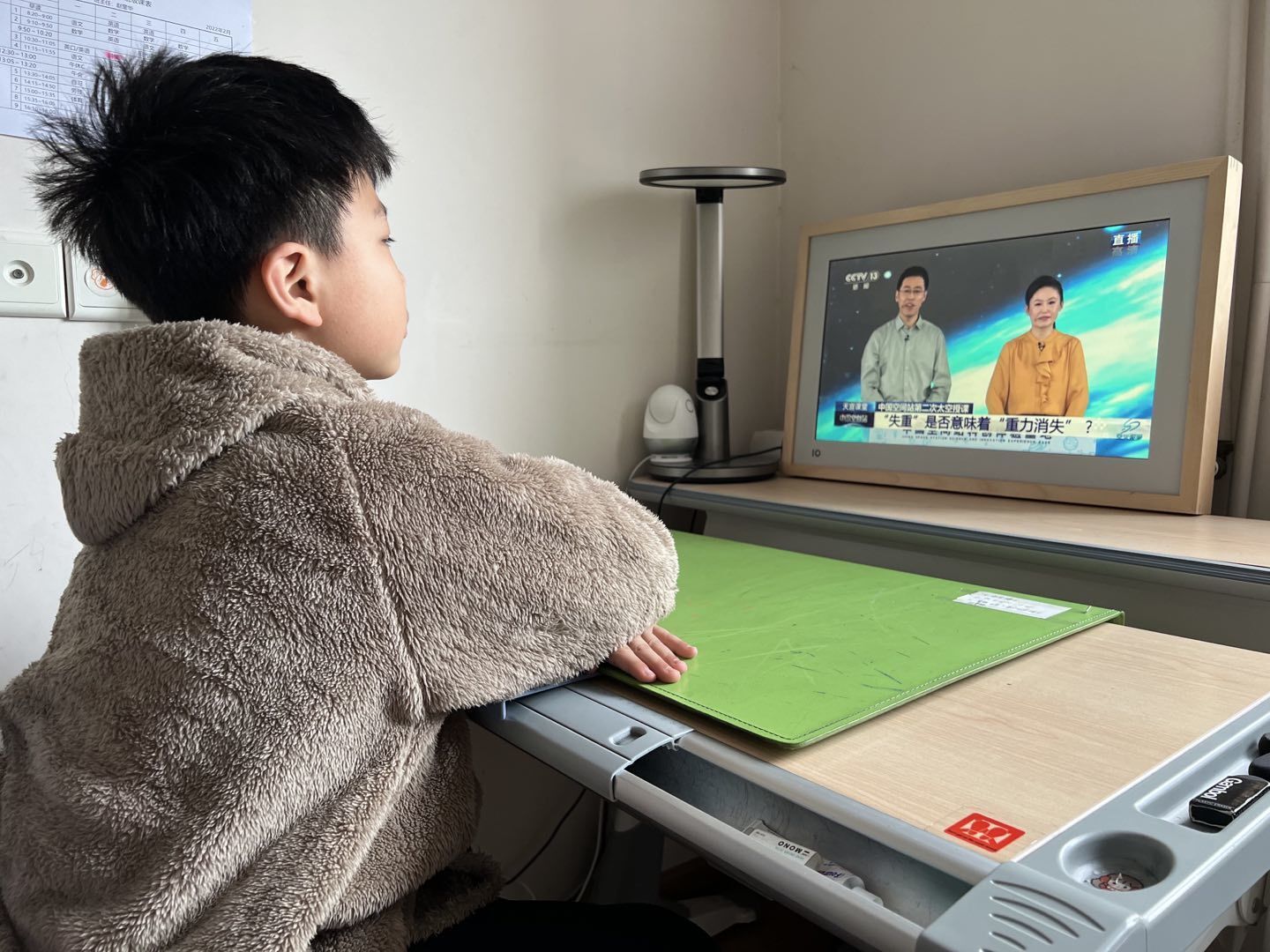 3月23日15:40分,南京外国语学校青奥村小学的同学们准时等候在云端,收看 “天宫课堂”第二课。这节课的授课老师,是让我们引以为豪的中国航天员:翟志刚、王亚平和叶光富。他们在距离地面400公里的“天宫空间站”,向我们介绍并展示了这里的工作、生活场景。课堂上,三位航天员讲解了太空“冰雪”实验,液桥演示实验、水油分离实验和太空抛物实验,并与地面课堂进行实时交流,互动,传播载人航天知识。同学们认真观看直播,被奇妙的太空生活和神奇的科学现象深深吸引。