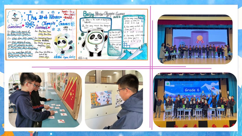 六年级的活动旨在丰富同学们的知识面,开拓视野,加强国际理解。老师们紧跟时代热点,将冬奥知识巧妙的融入每节课的热身环节,同学们人人参与答题,以小组为单位进行积分。经过一段时间的积累,同学们从“答题者”变身为“命题人”,开始自主创编冬奥相关问答题,将他们的成果制作成精美的海报。这些海报不仅成为了教室外墙一道亮丽的风景线,还成为班级之间相互学习的平台。最终,各班代表们站上了“六年级学生冬奥知识竞赛”的决赛舞台,一展风采。过程中同学们不仅收获了冬奥百科知识,还探索了体育竞赛中的科技元素与人文精神;增强了民族自信心,并感悟到了规则意识和团队的默契的重要性。希望他们能将这些知识和能力转化为素养,带着它们去一路开创无限可能的未来。