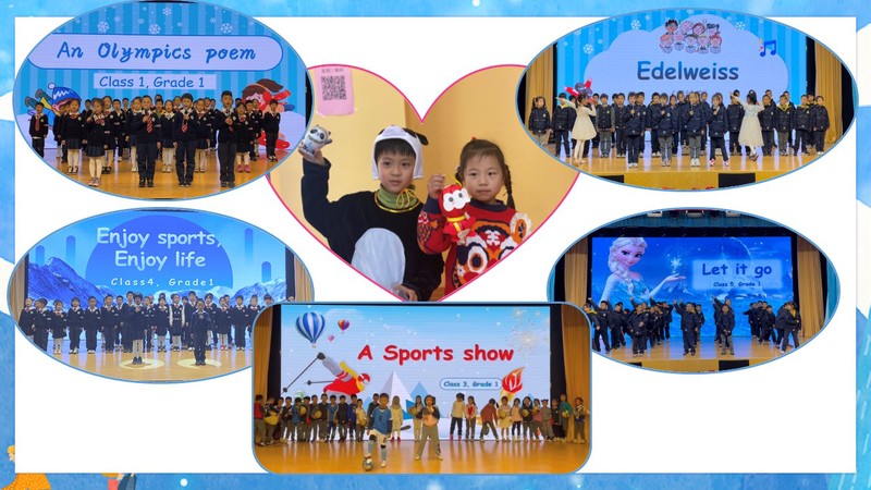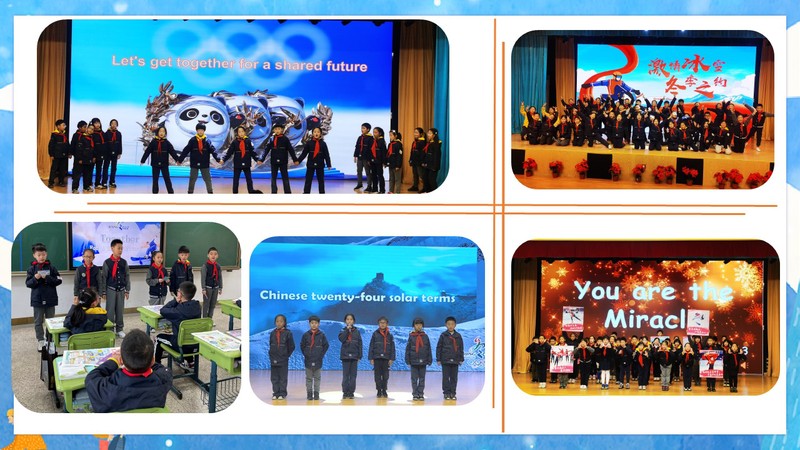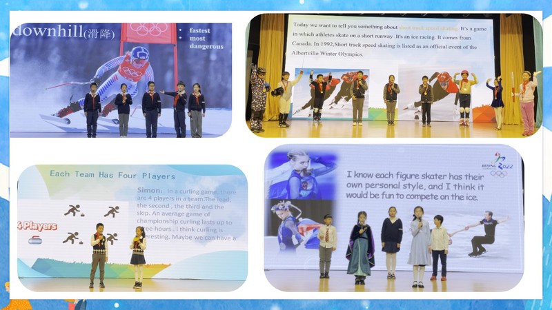 三年级的同学们用脱口秀和表演艺术相融合的方式给大家带来了场英语视听盛宴。本次活动通过北京冬奥会的视角,展示了冰球运动和自由式滑雪这些冬奥会热门项目,带领大家领略了历届主办城市的河流山川之美与风土人情之趣。同学们还合唱了 《Snowflakes》《You are the miracle》等经典英文歌曲,用动听的歌声描绘着体育运动的力量与美感。这是一次跨文化交流,更是一次融文化体验。同学们沉浸其中,收获满满。
