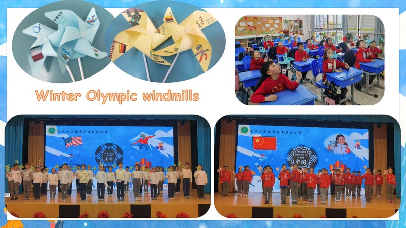 “胸怀祖国,放眼世界,旋转梦想,魅力冬奥”二年级的同学们在外语节活动中,对举冬奥会举办城市、国家、以及各种冰雪体育项目有了更加全面的理解。同学们通过歌曲《Winter Olympics》《 Snow flakes》 《I like to ski》《Together for a shared future》《Let it go》,以及T台秀节目《The Olympic Games》和《Sports song》表现出了对冬奥精神、冬奥文化和价值的感悟,增进了国际理解。整个过程每一位同学热情参与,自信表达。快来瞧一瞧同学们亲手制作的冬奥会风车,是不是超赞!