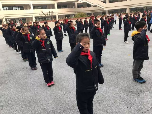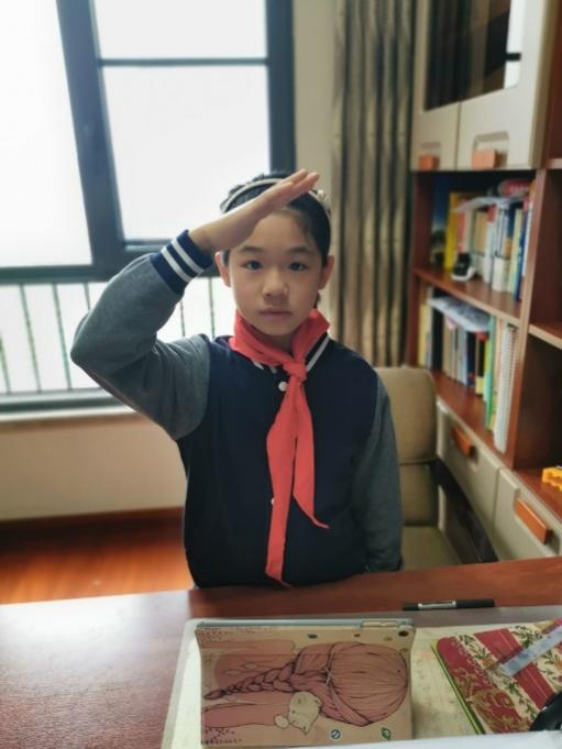 竖起右拳,我在队旗下宣誓:“我热爱中国共产党,热爱祖国,热爱人民,好好学习,好好锻炼,准备着:为共产主义事业贡献力量!此刻的我们下定决心:要为胸前的红领巾增光添彩,不断进取,健康快乐地成长。
