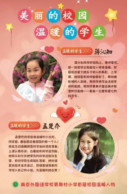 书声朗朗,绿草芳芳,南外青奥村小学,放飞梦想。回首在这里的六年小学时光,你已从稚嫩的孩童成长为朝气蓬勃的青少年。这六年里,你不断汲取新知识,掌握新本领,开拓新思维,结交新朋友……未来的路还很长,充满了无数的未知和挑战,愿你心中有爱,眼中有光,脚下有诗和远方!