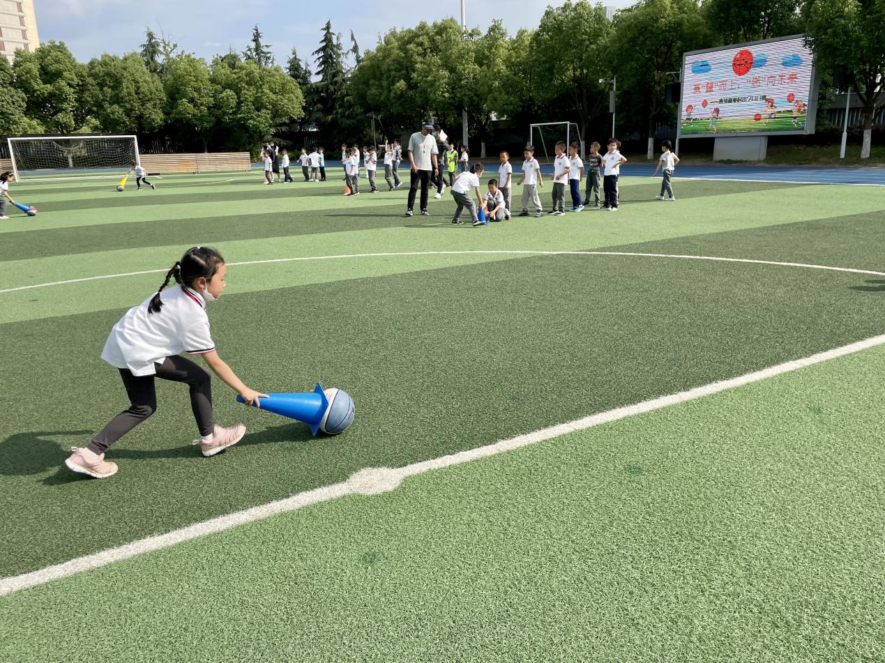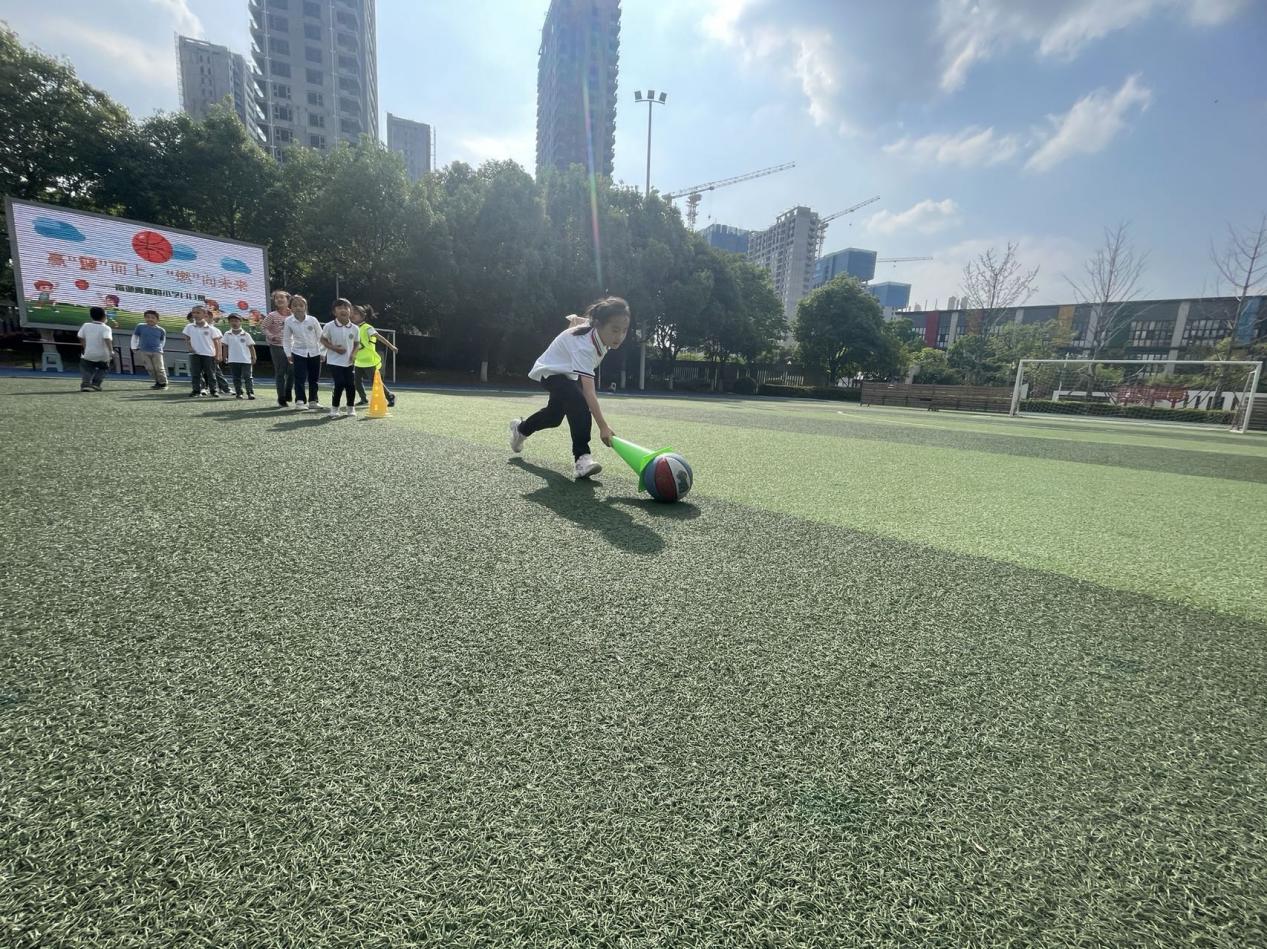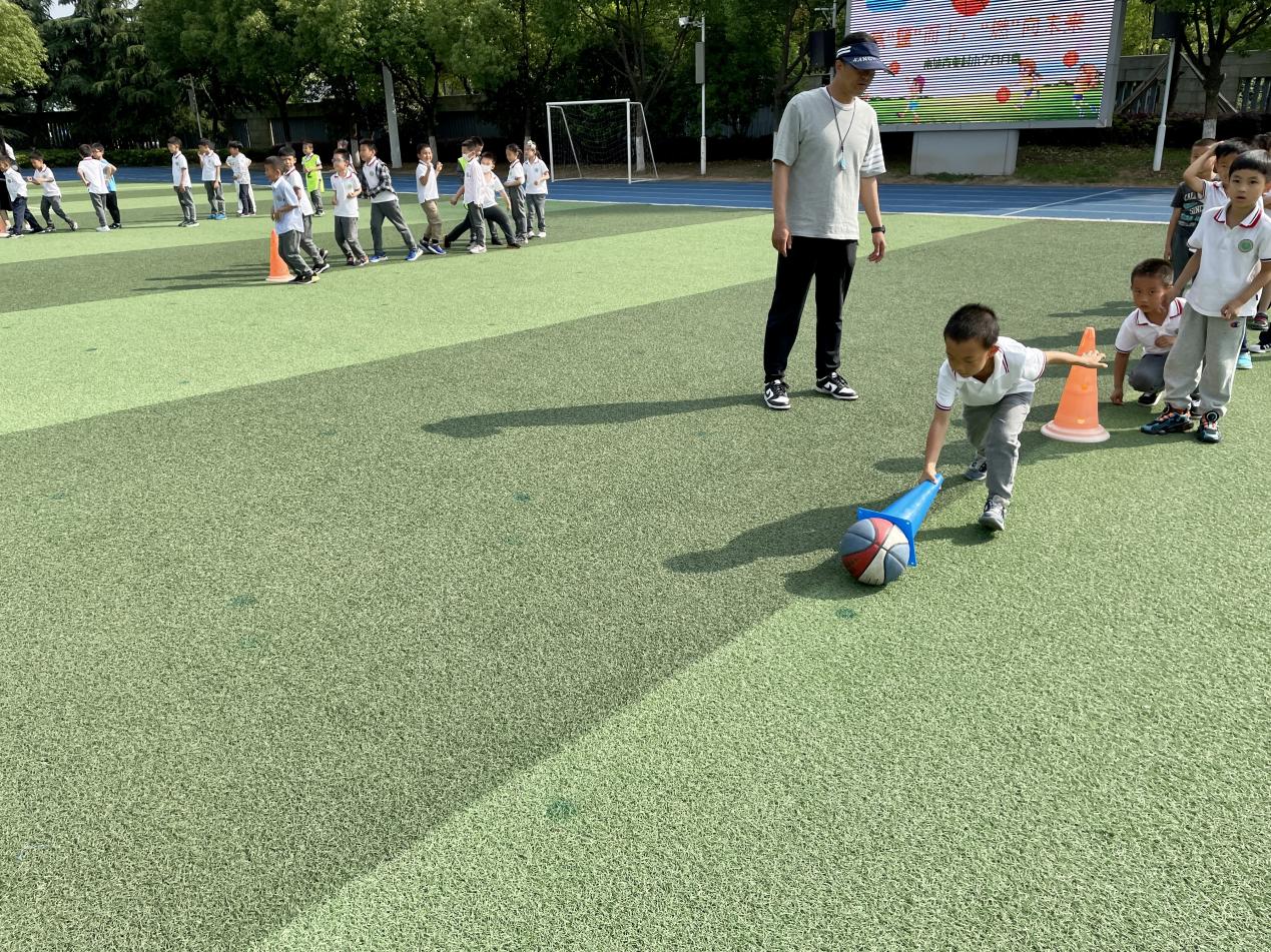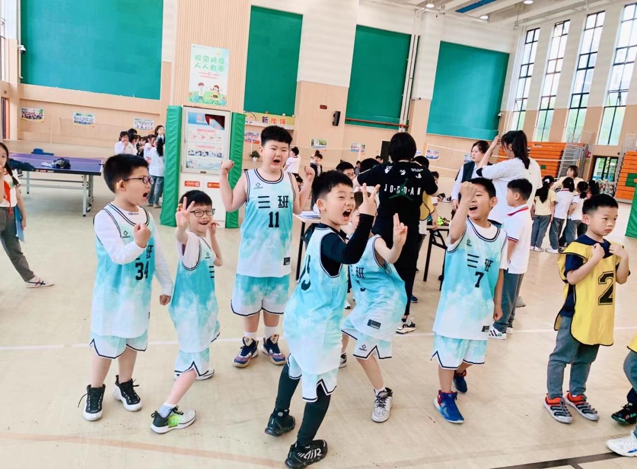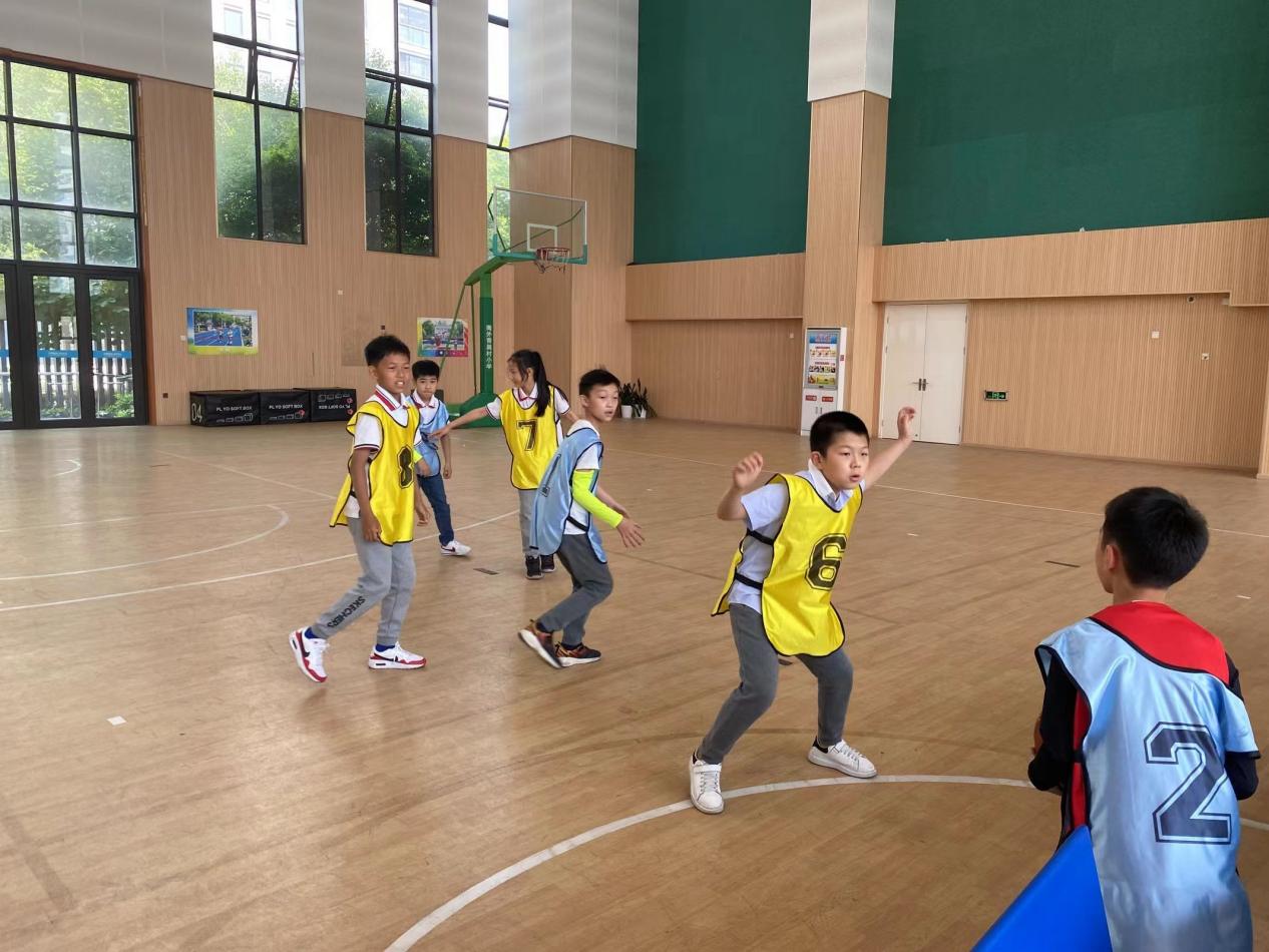 一年级的同学虽然没有参赛,但也沉浸在校园篮球的氛围中。瞧!他们进行了“赶小猪”比赛,协作融洽,配合完美。