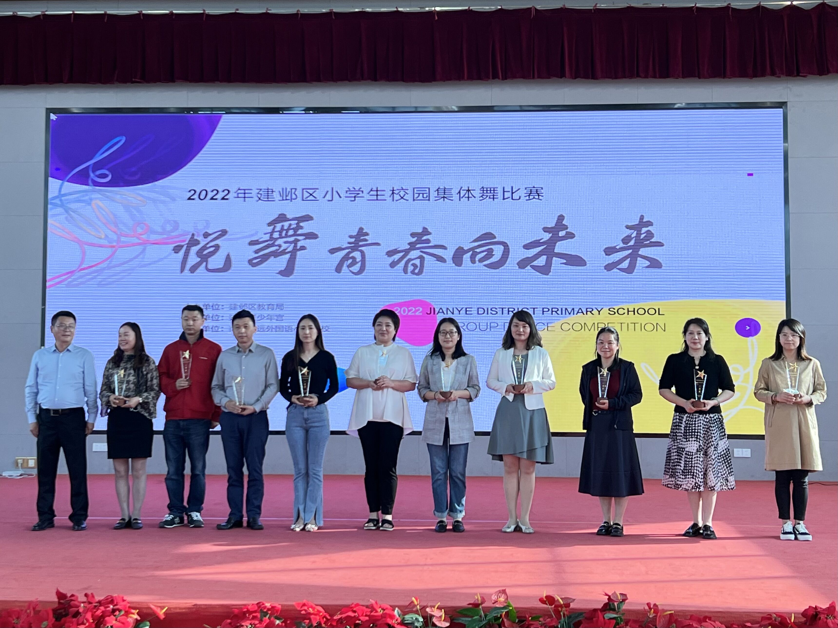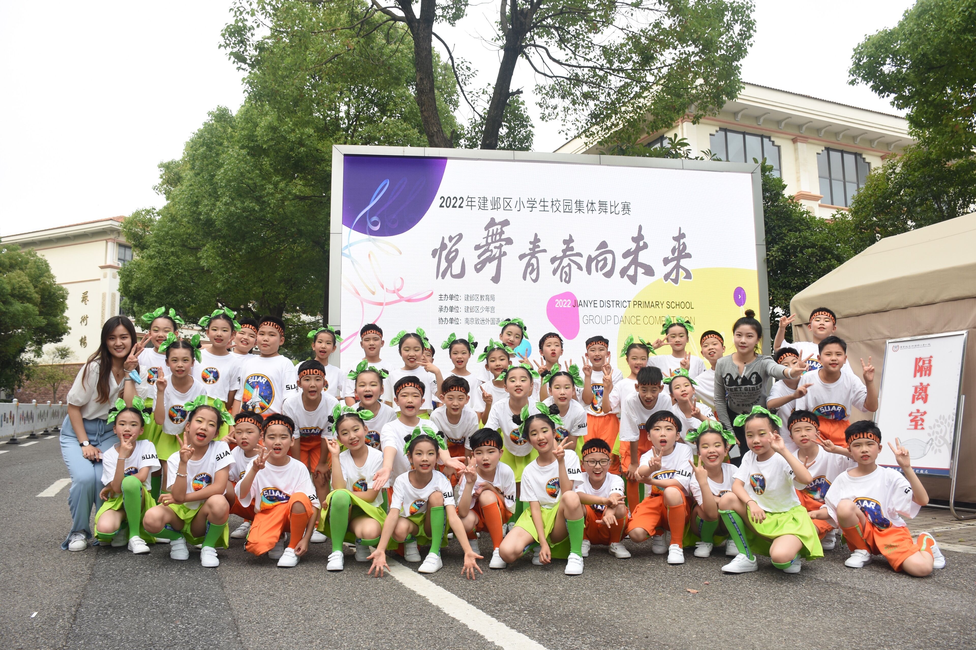2022年5月26日下午,由南京市建邺区教育局主办,建邺区少年宫承办的“悦舞青春向未来”2022年建邺区小学生校园集体舞比赛拉开了帷幕。全区共27所学校参加了本次比赛,我校集体舞代表队以一支富有动感的《勤俭节约听我的》舞蹈,荣获此次比赛的一等奖!