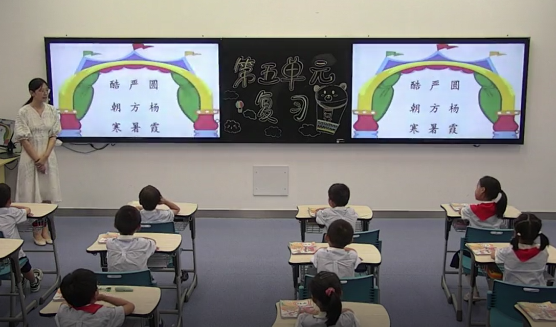 我校辛楠楠老师执教的是一年级--第五单元复习课。注重习题的趣味性、实效性。课堂上,辛老师将趣味性和实效性融为一体,以“森林王国要开运动会”为情境,带领小朋友们进行大闯关游戏,复习了字族识字。接下来,老师设置障碍,对本单元需要背诵的课文、字词等知识点进行了系统的梳理与回顾。通过本次复习课,使学生在本学期学习到的知识条理化、系统化。