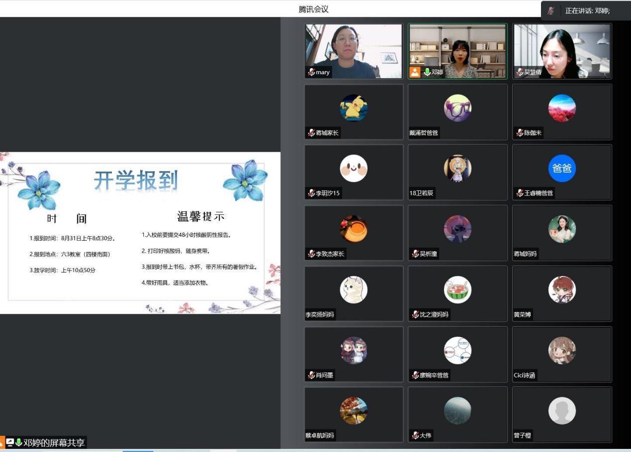在“双减”背景下,老师们还从学科角度交流了新学期准备及学习要求,为孩子迎接新学期做了良好铺垫。家长们仔细聆听,认真记录,通过云交流的形式与老师们积极互动,并表示今后与学校形成合力,助力孩子幸福成长。