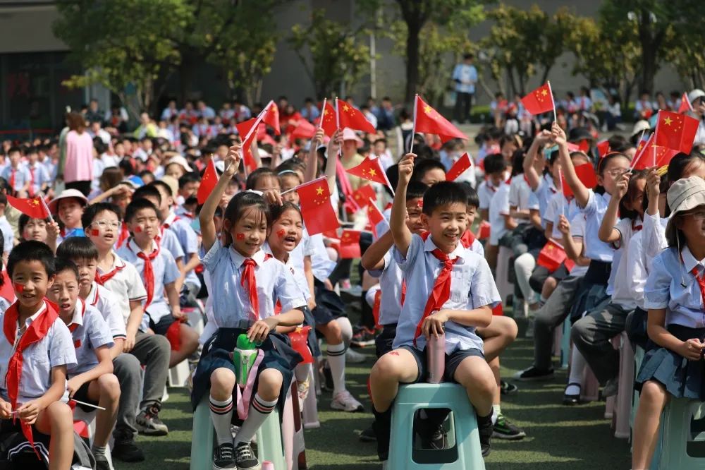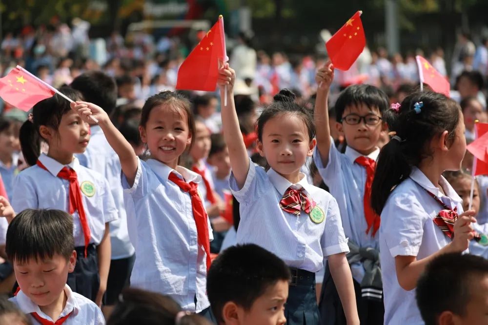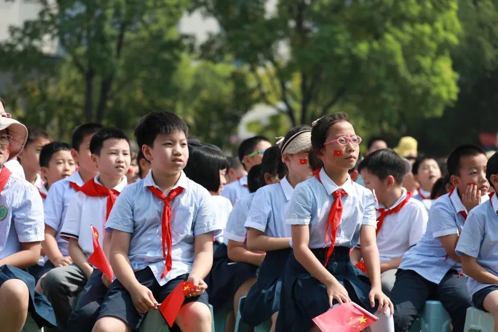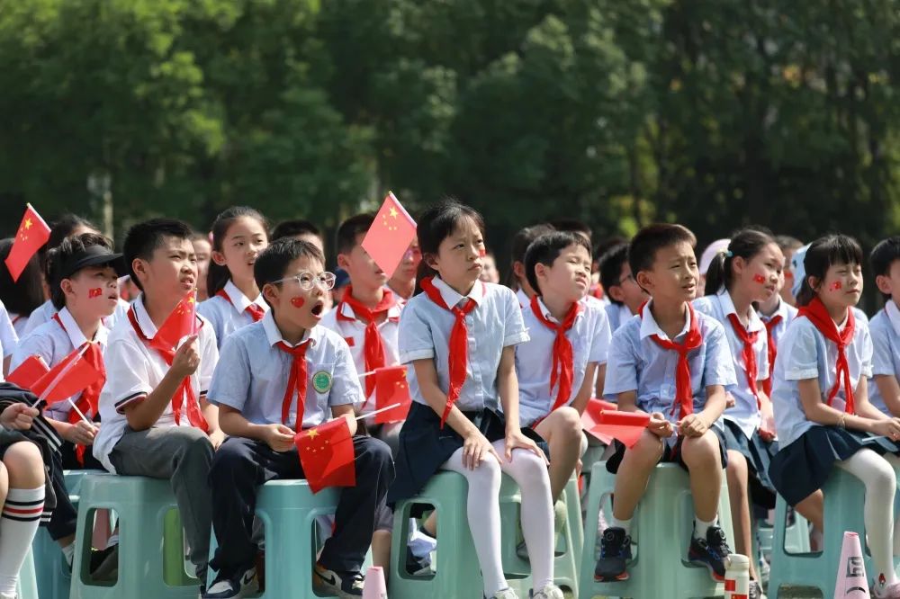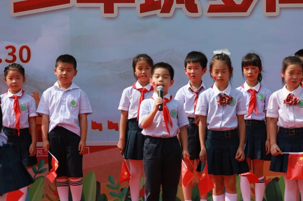 校园里年龄最小的一、二年级小朋友,也用自己的方式为祖国送上了祝福。他们在台前动情地朗诵《祖国颂》,饱含着对祖国最真切的爱。