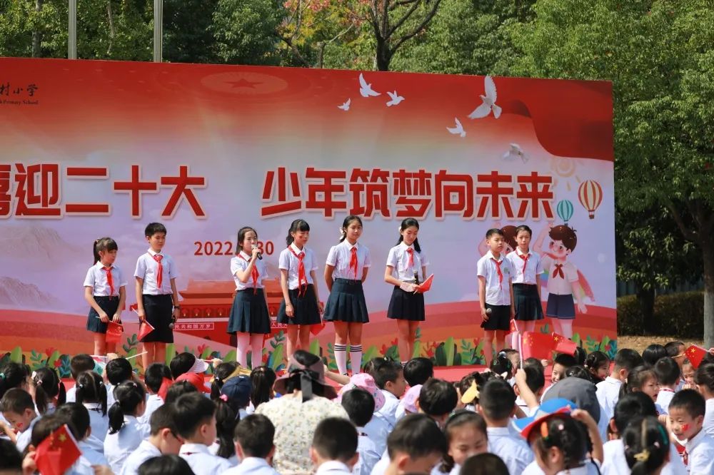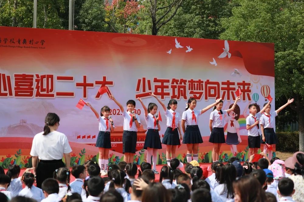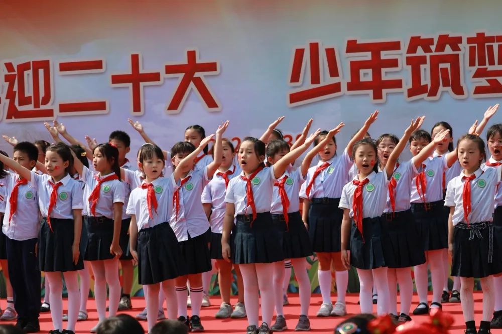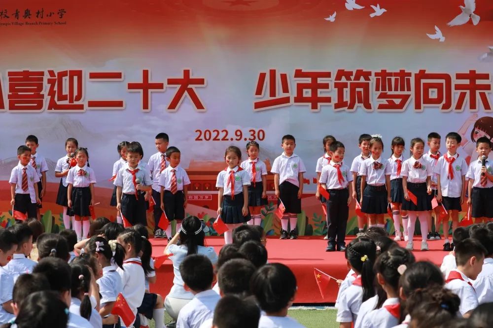今天上午,我校举办了“童心喜迎二十大 少年筑梦向未来”国庆庆祝活动。红歌声响彻校园,全体师生献礼祖国,喜迎祖国七十三华诞。