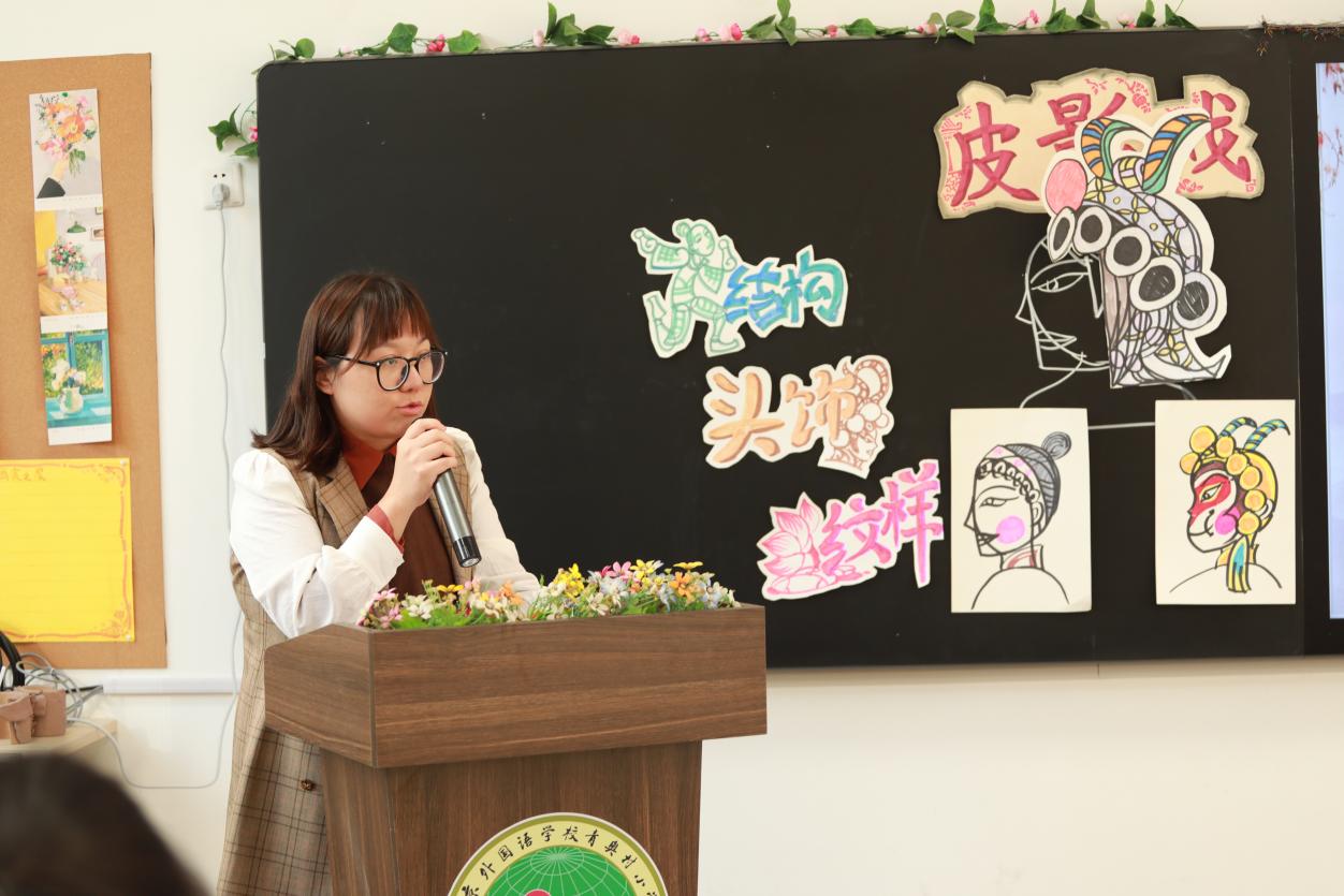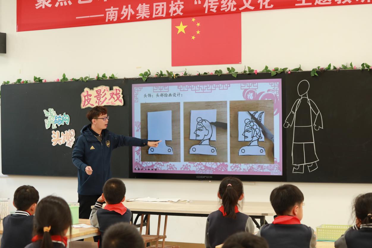 第二个活动内容,是我校陈辰鑫老师和南外河西小学部王睿老师的课堂展示。陈老师用戏剧唱腔揭开了《皮影戏》千年的历史,它发源于陕西,是中国的非物质文化遗产。陈老师带领学生感受“现代电影始祖”的文化魅力,体验有趣、新颖的绘画方法,巧用玻璃纸、纽扣等新材料模拟了古今融合的“一出好戏”。孩子们沉浸于中国传统艺术魅力中,边玩边学,快乐成长。
