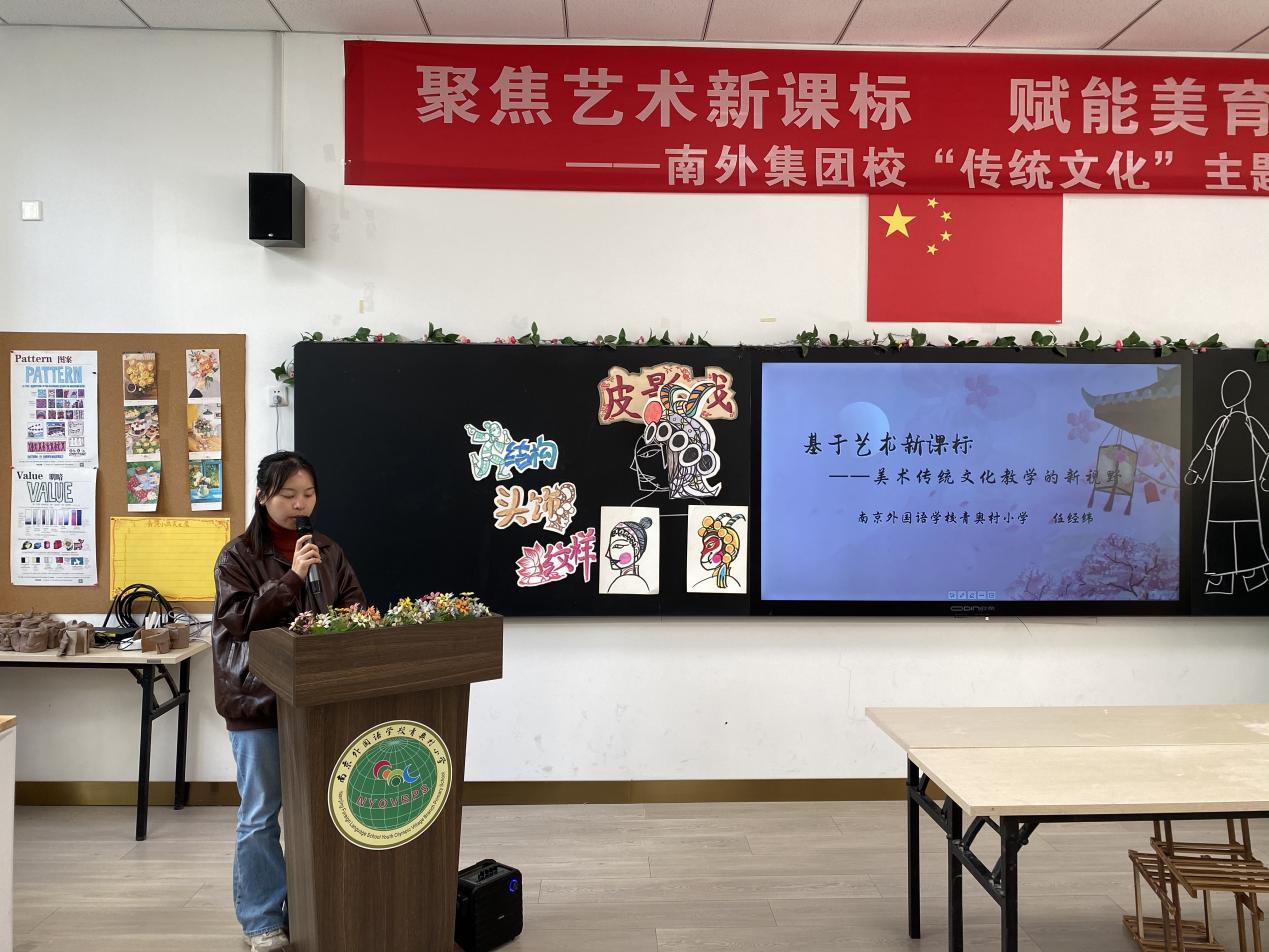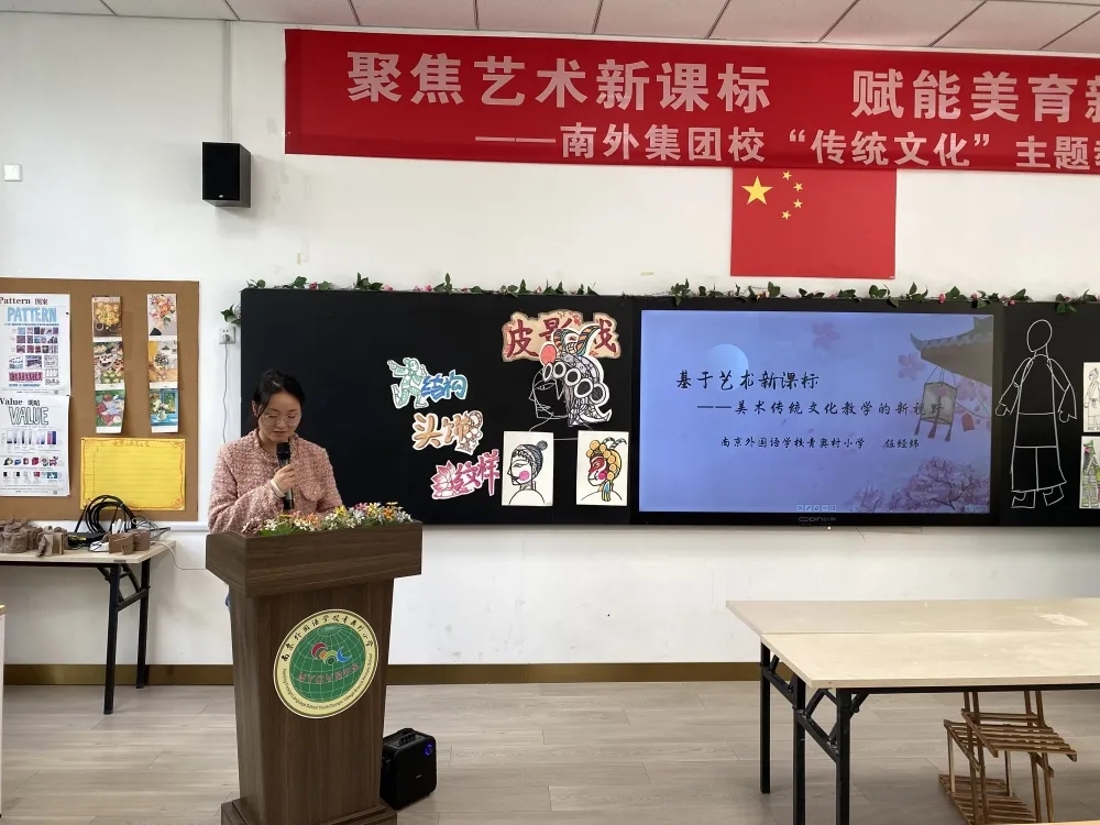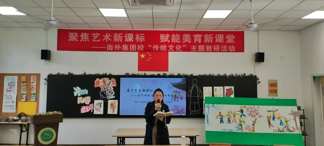 接下来,是我校任经纬围绕“基于艺术新课标,美术传统文化教学新视野的探索”开设的一节讲座。她结合新课标与四节教研课,提出美术的跨学科教学,如皮影戏与戏剧之间的互融共通,信息技术与传统水墨的结合等。教师要利用传统文化与本土资源,引领学生感受传统工艺、树立文化意识、唤起文化自信。