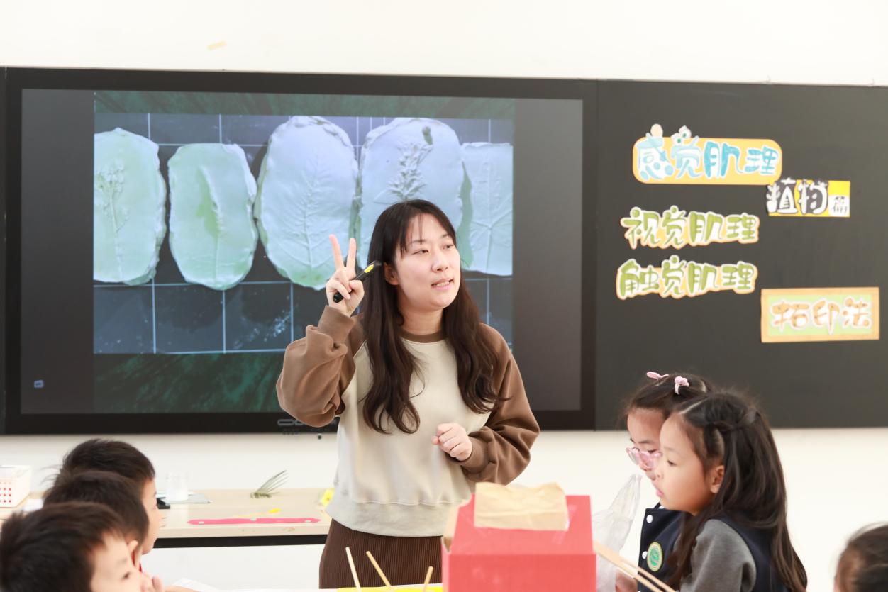 在李老师《感觉肌理》这节课中,将自然界的植物与传统文化陶泥相结合,引发学生通过视觉、触觉的双重感官游戏去感受植物的肌理,体验用淘泥、石膏制作植物肌理浮雕。植物叶片的细微叶脉、鲜花花瓣的精密纹路,都被陶泥细腻的捕捉。教师在教学上突破传统材料限制,让学生的创意思维打开,引领学生观察自然、动手创造美好生活。