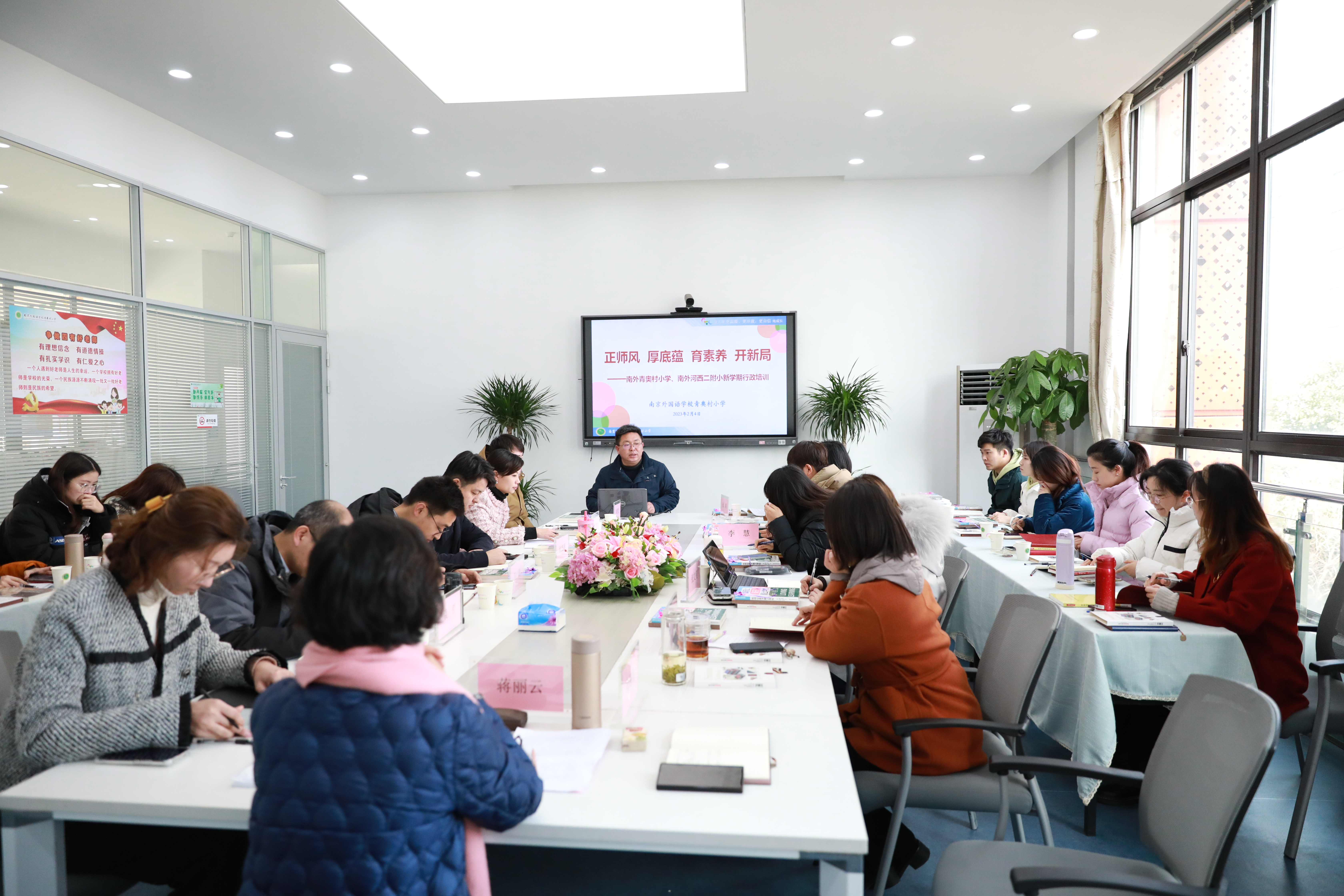 立春之际,满目皆景;奋进勃发,行于当下。“双减”“双新”背景下,基于学校教育改革的需要,为切实提高教师专业素养与行政团队管理能力,推进学校进一步高质量发展,2月4日,南外青奥村小学、南外河西二附小教师团队齐聚青奥校园,共同开展新学期开学培训活动。本次培训活动采用专家讲座、校际分享、部门交流等形式,聚焦新学期工作重点、热点、难点问题,开展深入学习与研讨,为全面提升两校育人质量提供人才与智力支撑。