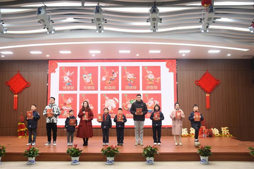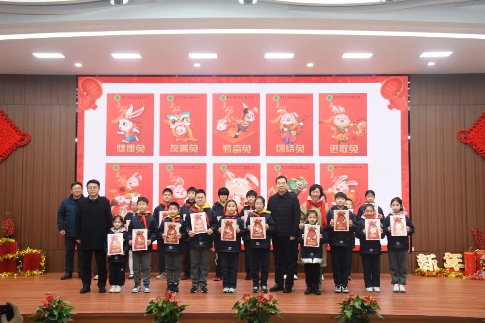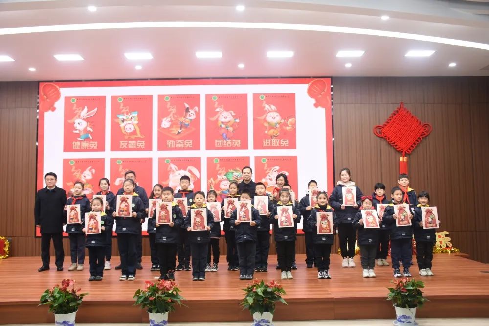 吴局、陈局和我校领导一起为班级代表颁发属于自己班级的“福兔卡”,带着满满的福气开启新的学期。