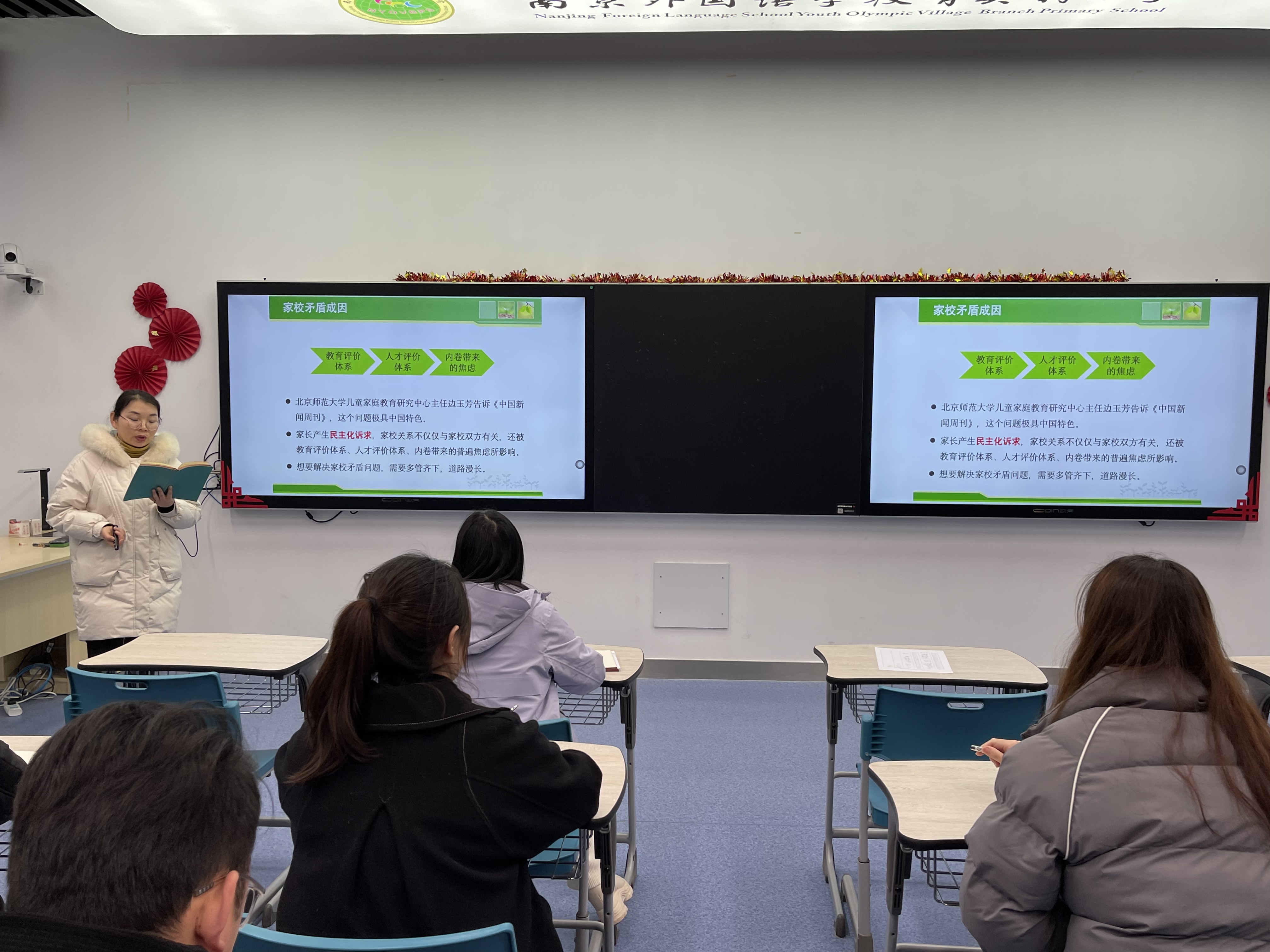 本次分享会邀请了我校四位班主任老师结合秦淮区教研员芦芳老师的“静水流深 玉汝于成——例谈后疫情时代教师智慧处理家校矛盾”主题育人讲座内容,结合自身的工作经历分享自己的学习感悟。
