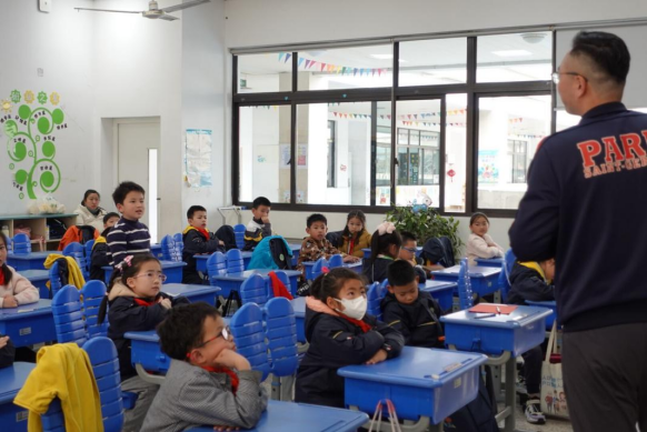 今天是家长们进入班级课堂做老师的日子,扬起的笑脸、和煦的春风、站在讲台的家长,共同组成了一道南外青奥村小学美丽的风景线!