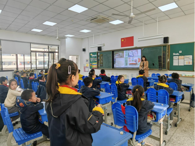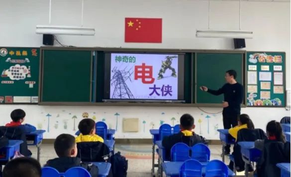 二(1)班的金子芮爸爸结合自己的工作经历,用通俗易懂的语言为同学们介绍人类从自然界中发现电到生产电、利用电、电能向清洁低碳高效转型的发展历程,以及日常生活中安全用电、电力设施保护等相关知识。最后他还为每一位同学准备了一个电学类的科学实验玩具盲盒,培养同学们动手和思考能力。