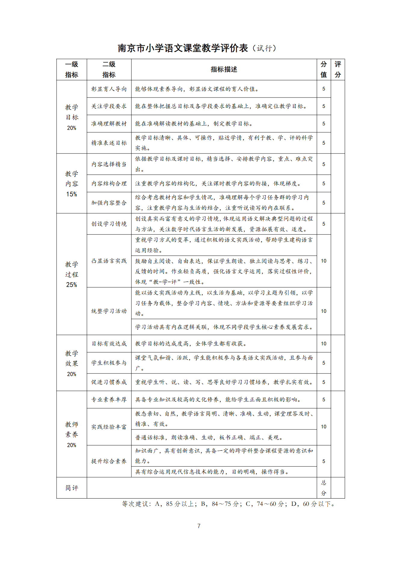 “南京市小学语文课堂评价表(试行)”就教学目标板块分为四个维度,分别是彰显育人导向、关注学段要求、准确理解材料和精准表述目标。
