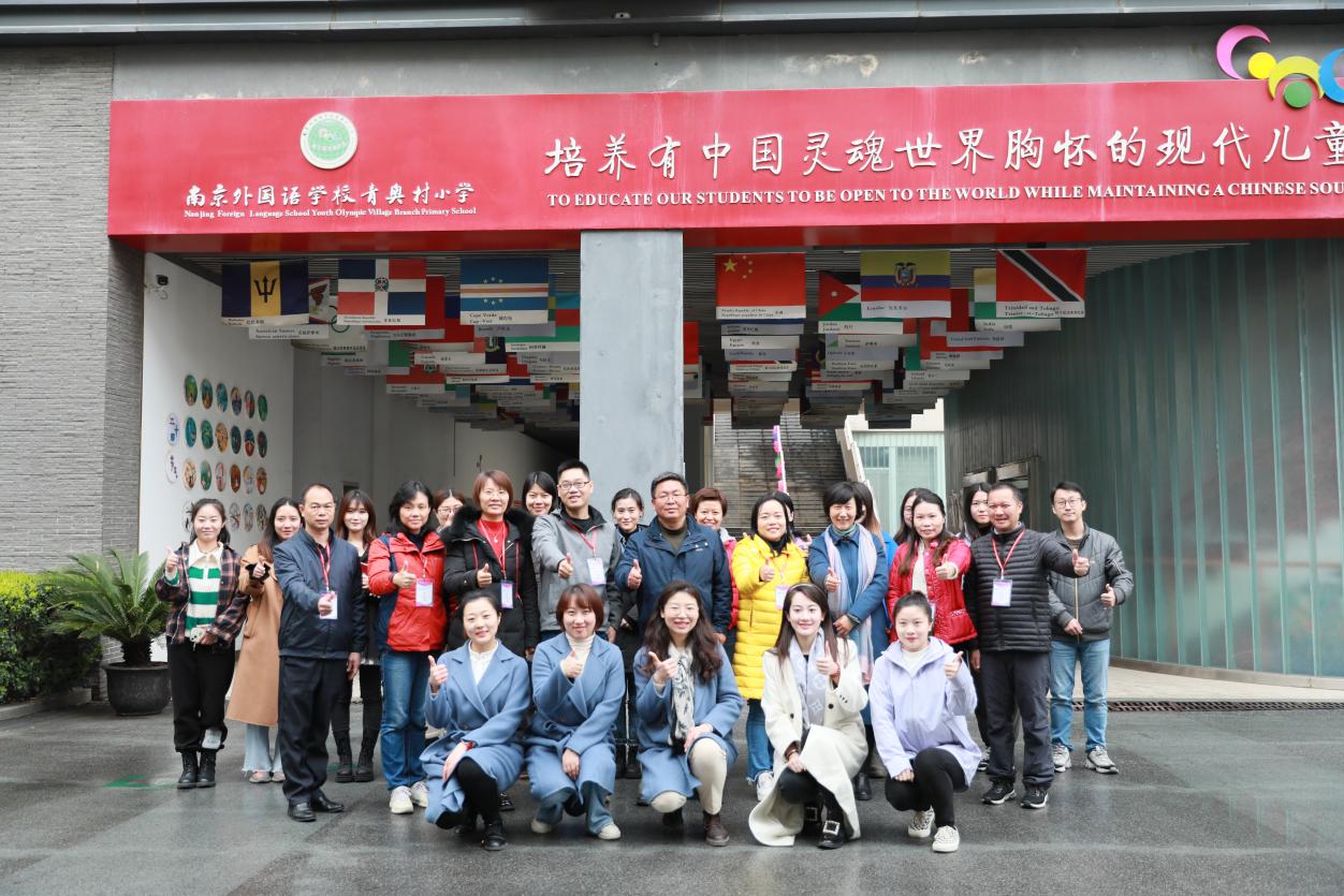 3月23日下午,南京外国语学校青奥村小学迎来了新朋友——广州市基础教育系统新一轮“百千万人才培养工程”第四批小学名师培养考察团。考察团实地了解我校以“更温暖更开放更自信成长的美好学校”为愿景的办学实践,重点交流了“双新”背景下学校综合实践活动课程的实施情况。蒋丽云校长、朱道亮书记及综合实践课教师代表热情接待了来自广州的教育同仁。