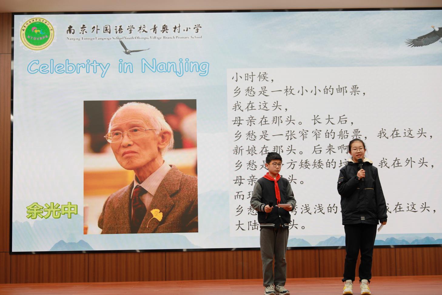 五六年级的同学们通过生动的表演和演讲为我们揭开了历史华章的序幕,用中英文融合的方式精彩再现了孟母三迁、滥竽充数、塞翁失马等经典成语故事,“画龙点睛”地说明了其中蕴含的中华美德、民族智慧。小演员们还化身南京本地的“双语导游”,他们用最流利的英语讲述着最动听的南京故事。Everyone feels so proud to live on this land.