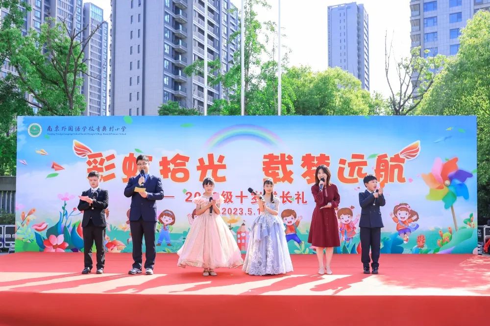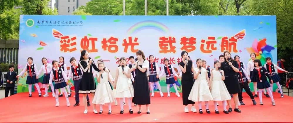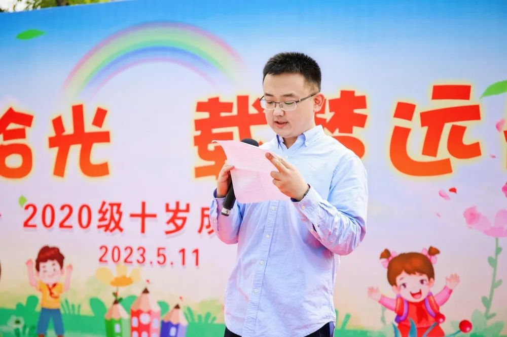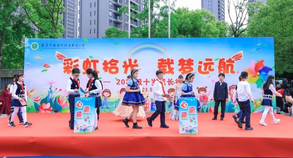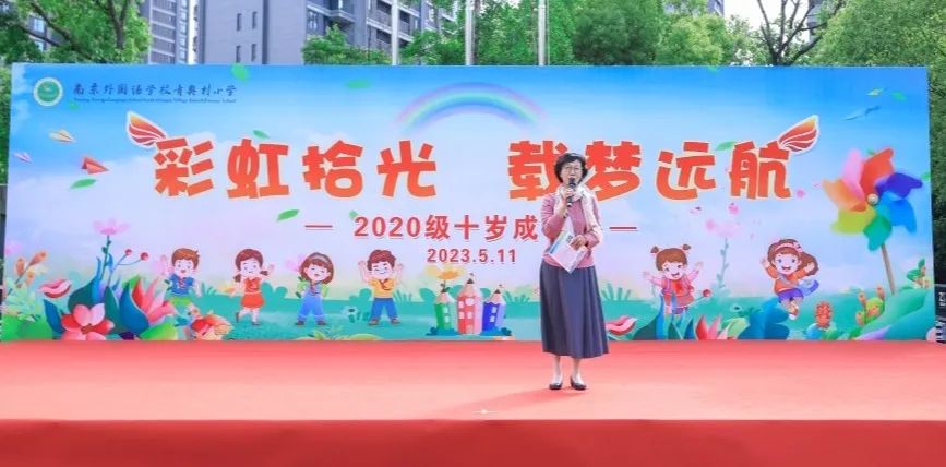 2023年5月11日下午,全体三年级师生与家长一起,在学校操场开展了以“彩虹拾光 载梦远航”为主题的十岁成长仪式。