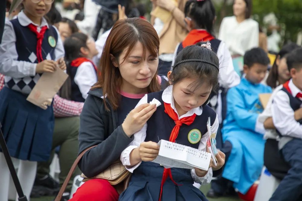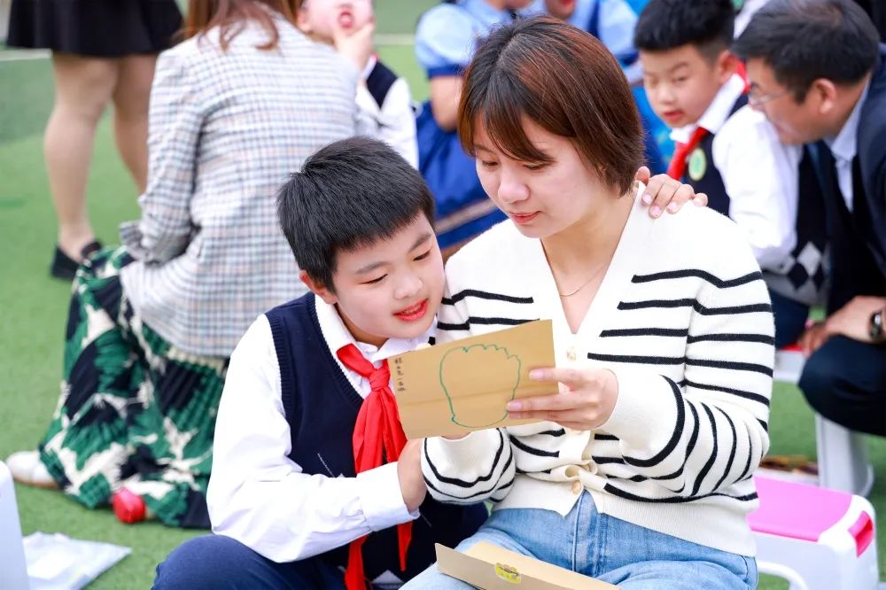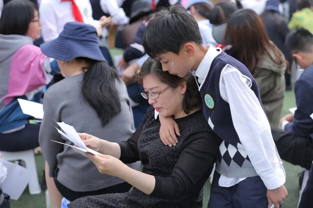 张校长为各班发放成长纪念卡。班主任老师也为孩子们深情寄语,祝福每一个孩子在成长道路上不断进步,成为更好的自己!孩子们也用中国传统礼仪,向父母、老师和同学行拱手礼,表达心中的感恩之情。