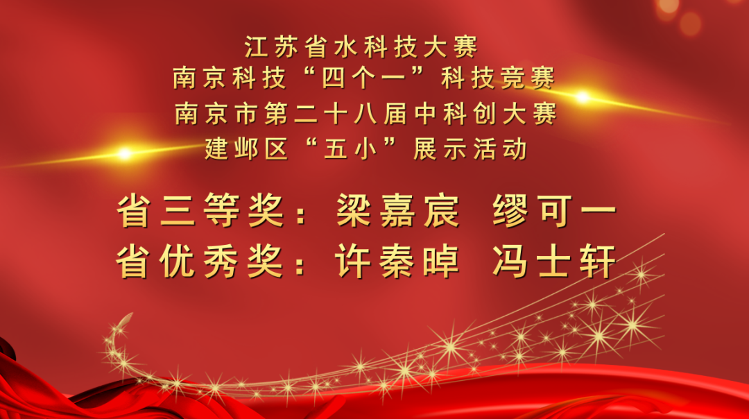 在其它科技类比赛中,我校学生同样表现优异,捷报频传。4名同学在江苏省水科技大赛中获奖;40名同学在南京市“四个一”比赛中获奖;14名同学在南京市科技创新大赛中获奖;27名同学在建邺区“五小”活动中获奖。