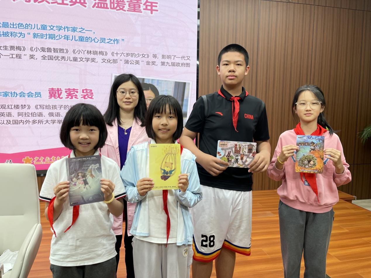 戴萦袅老师和孩子们亲切问候后,与在场的孩子们分享起了自己创作的心路历程,她四岁开始发表儿歌、八岁开始读《红楼梦》,这些经历都为她日后的创作之路打下良好的基础。戴老师让同学们试着将生活中的点滴记录下来,将一些有趣的故事进行艺术加工,发挥自己的想象,这样就能掌握好写作的诀窍,孩子们听得非常入神。