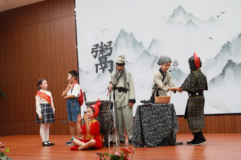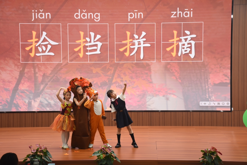 区教师发展中心季慧敏副校长对本次汉字文化节活动给予高度肯定。季校长指出:“学会中国字,学做中国人,做自信的中国人是本次活动的目的。”评委老师点评道:“本次的活动丰富有童趣,每一个都很精彩。特别是每个节目的选择都是在具体情境中学习汉字,选择非常丰富,让孩子在情境化的活动中学习,贴近生活,从生活中取材。在剧本中还关注自然,借助传统文化内容学习汉字。既有生活化小主题,又有保家卫国的大主题,指向文字学习。精美的服化道,也凝聚着老师们的心血。节目不同于课本剧,它体现汉字文化的学习,不仅关注汉字表层结构的归类,更多对汉字深层结构作深入研究。”