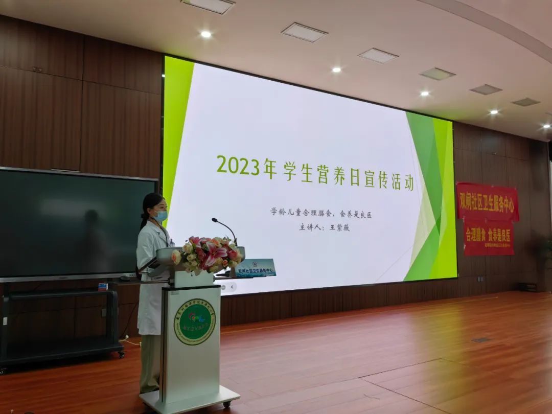5月23日下午,我校邀请了建邺区双闸卫生服务中心的王紫薇医生为四年级的孩子们带来了一场合理膳食的健康讲堂。