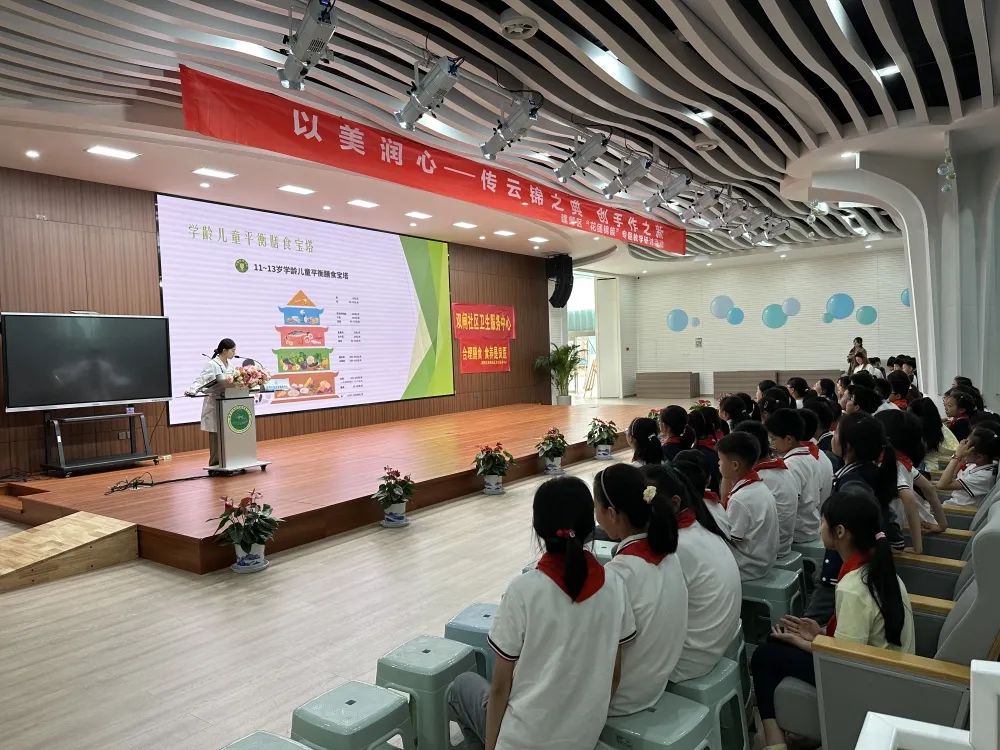 王医生围绕全民营养周的主题展开,从食物的营养、健康饮食行为、足量饮水、吃动平衡、一日三餐的合理安排等方面,引导同学们建立营养膳食的观念,提升营养健康素养。