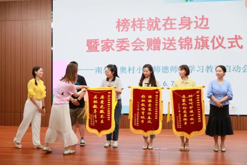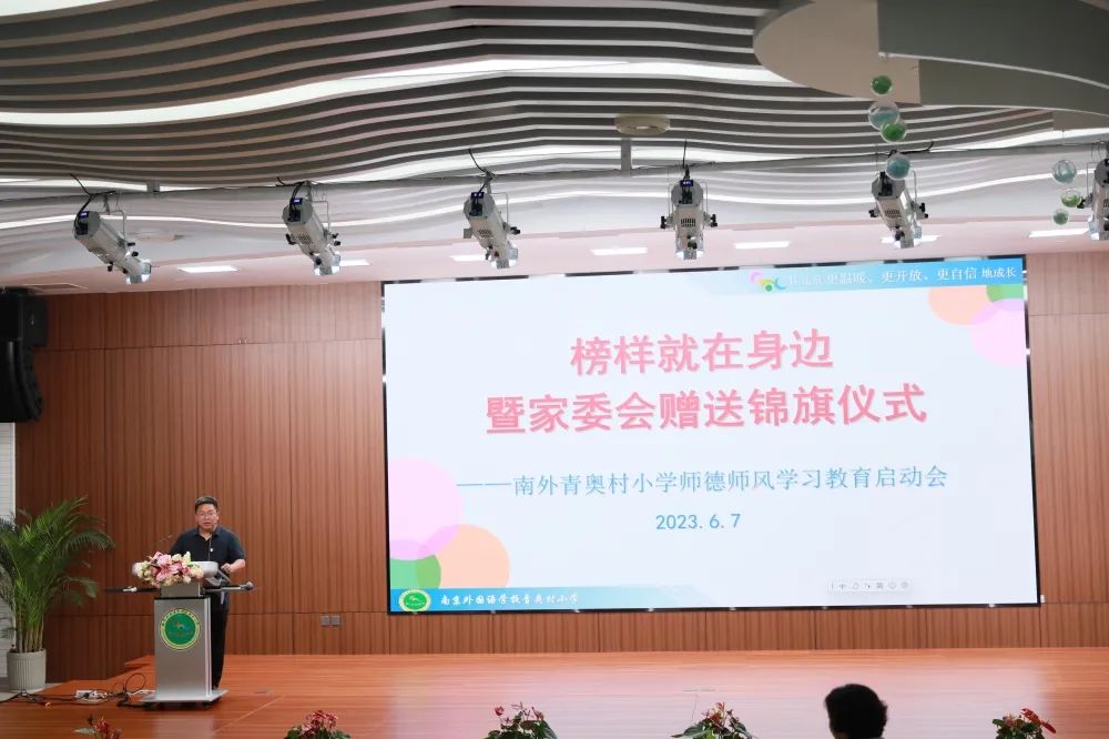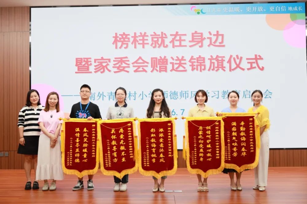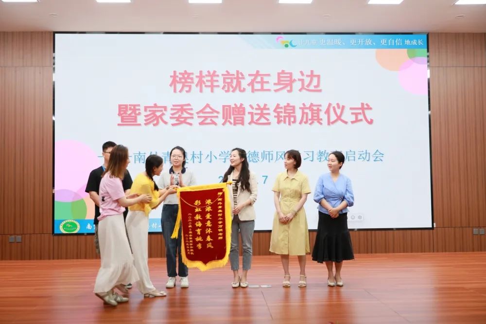 欲树人,先立德;立德树人,先立师德。为进一步加强师德师风建设,全面提升教师队伍素质,充分发挥榜样带头作用,6月7日下午,南外青奥村小学举行了“榜样就在身边暨家委会赠送锦旗仪式”。