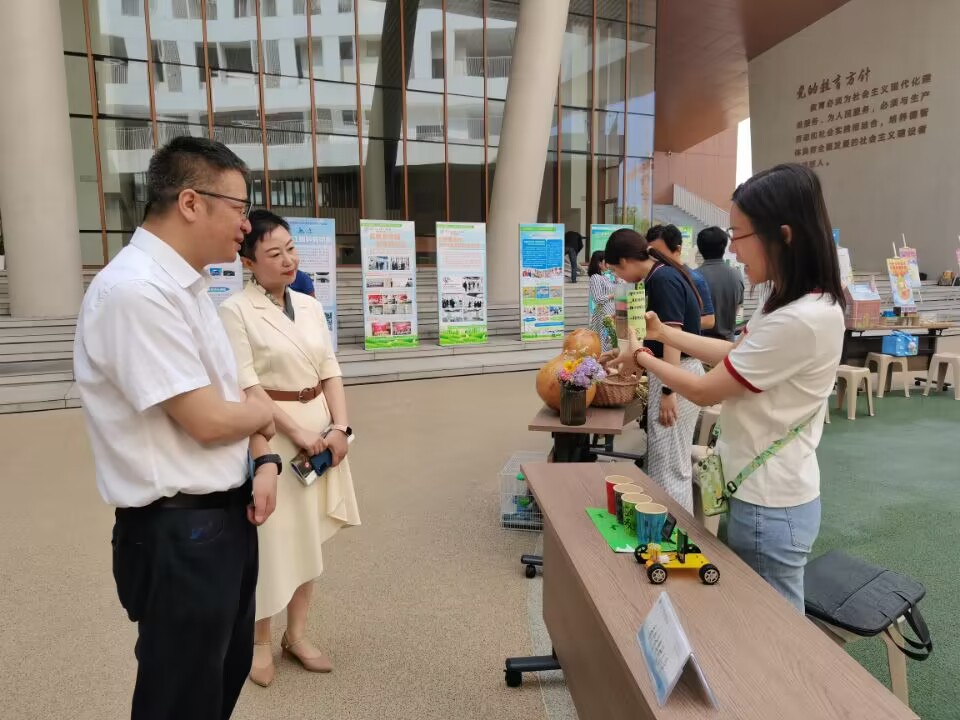 学校历来重视生态文明教育工作,将生态文明教育工作与教学常规管理相结合,融入各学科教育教学工作中。活动上,我校向参加活动领导和老师展示我校同学们利用回收品制作的科技、美术作品,得到了一致好评。