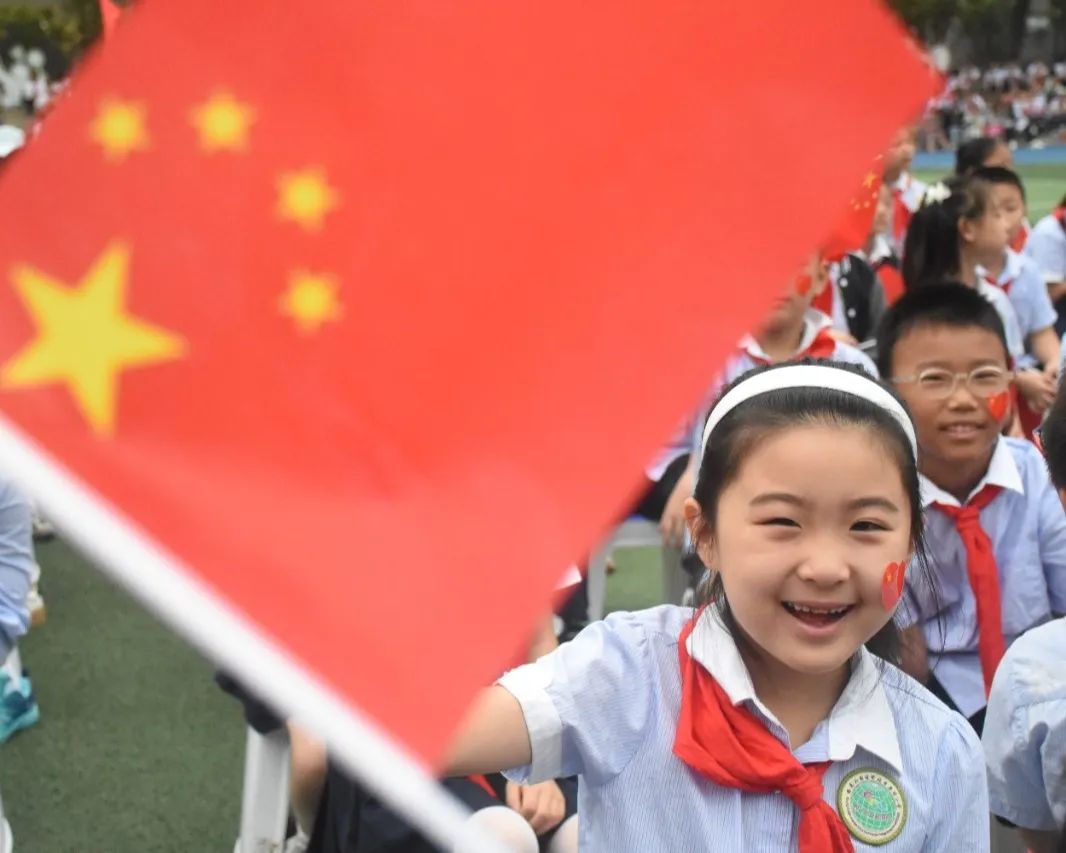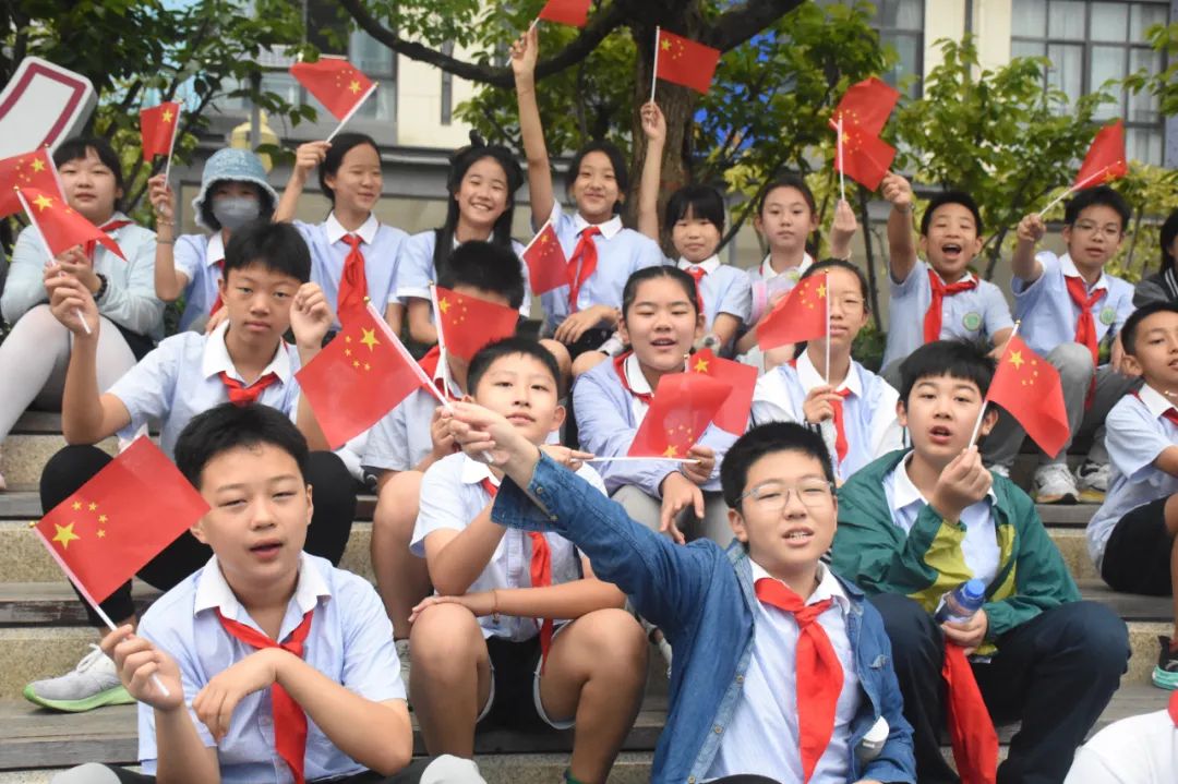 9月28日,南外青奥村小学全体师生齐聚操场,举办“童声里的中国”庆祝活动。