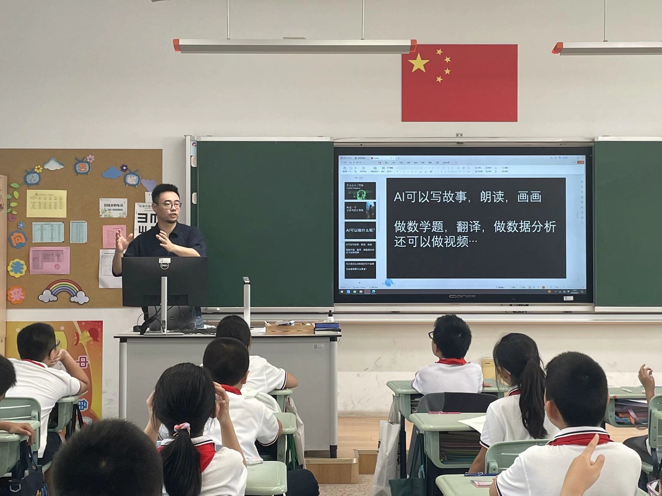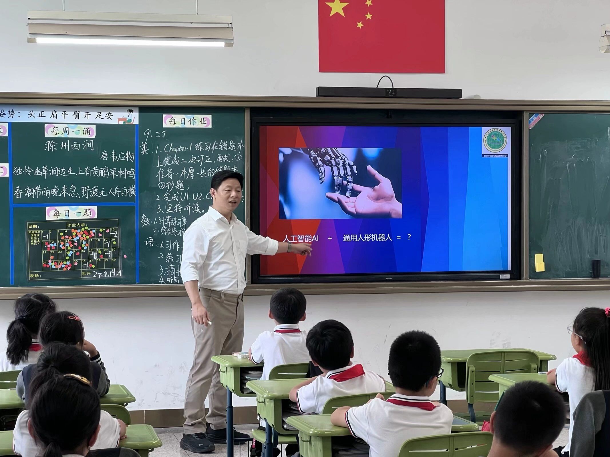 五(4)班:刘博轩爸爸带领孩子们感受“人工智能”的魅力。课堂主要围绕人工智能的发展演变和应用展开演讲,通过生动形象的人工智能应用场景图片以及模型互动视频为孩子们展示了人工智能现今在计算机视觉、视频剪辑、语音技术、机器人技术等方面的实际应用。孩子们发现了人工智能与生活细枝末节息息相关,同时为科技的进步感到无比自豪,科技创新的小种子也深深扎根在每一个孩子的心底。