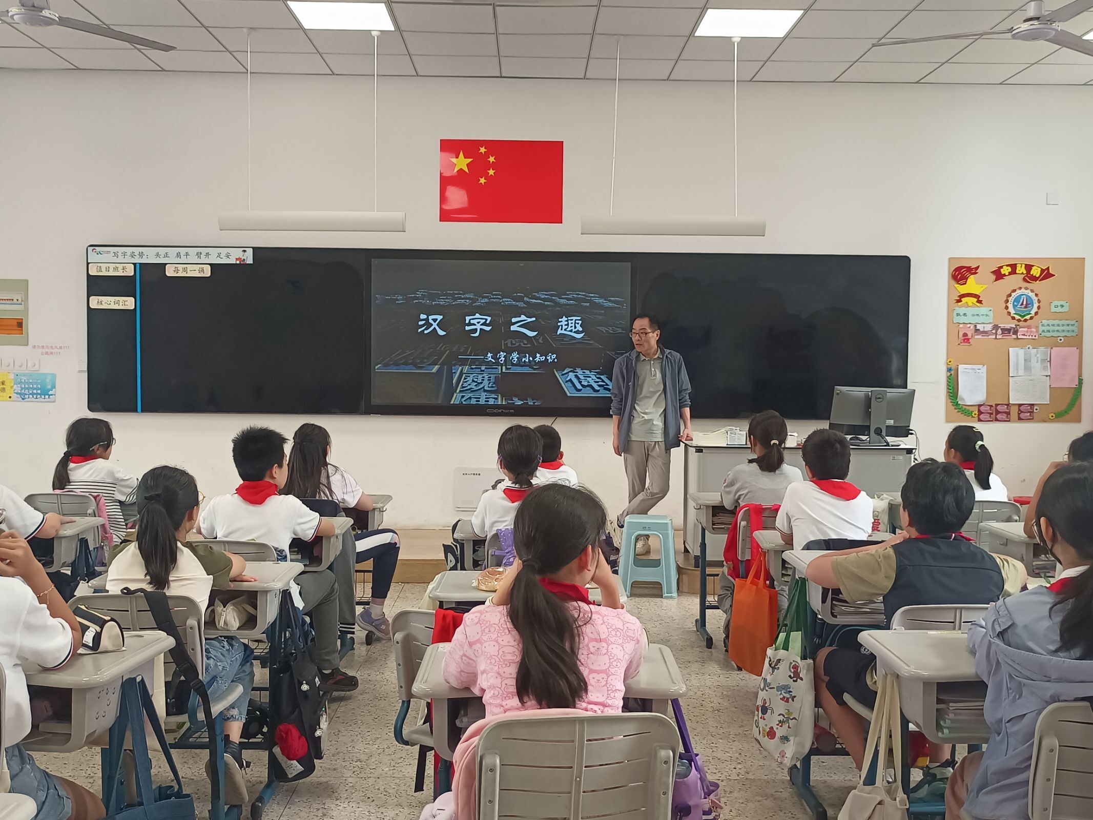 六(4)班:钱昊泽妈妈请来了一位大学老师为孩子们讲述汉字之魅。蒋老师从最早的甲骨文说起,引导孩子们了解中国汉字的演变、造字方法及汉字的分类。在一幅幅生动的画面及蒋老师风趣的讲解中,孩子们感受到了汉字的无限魅力。