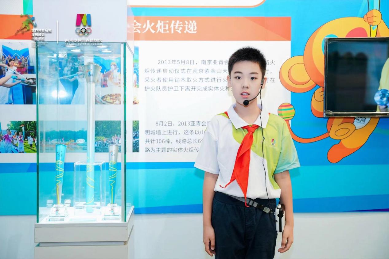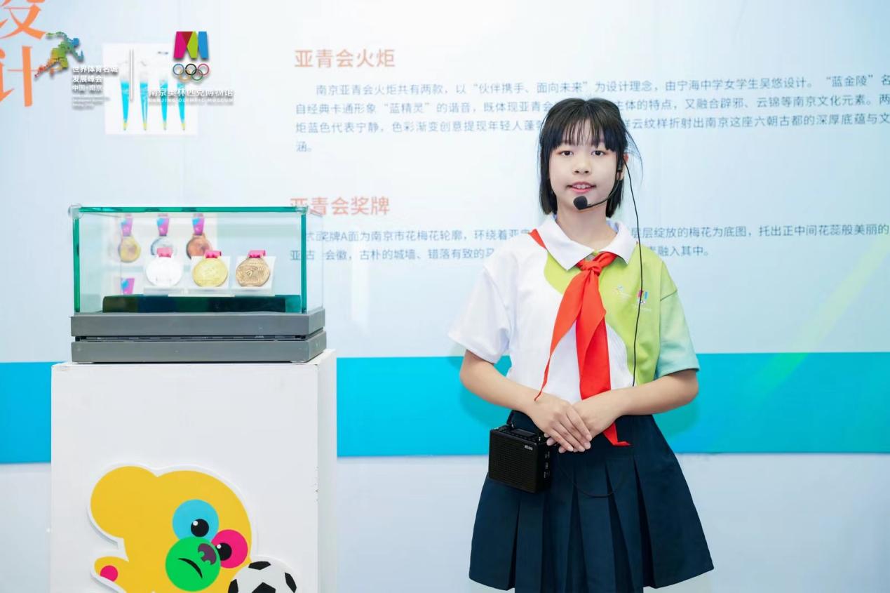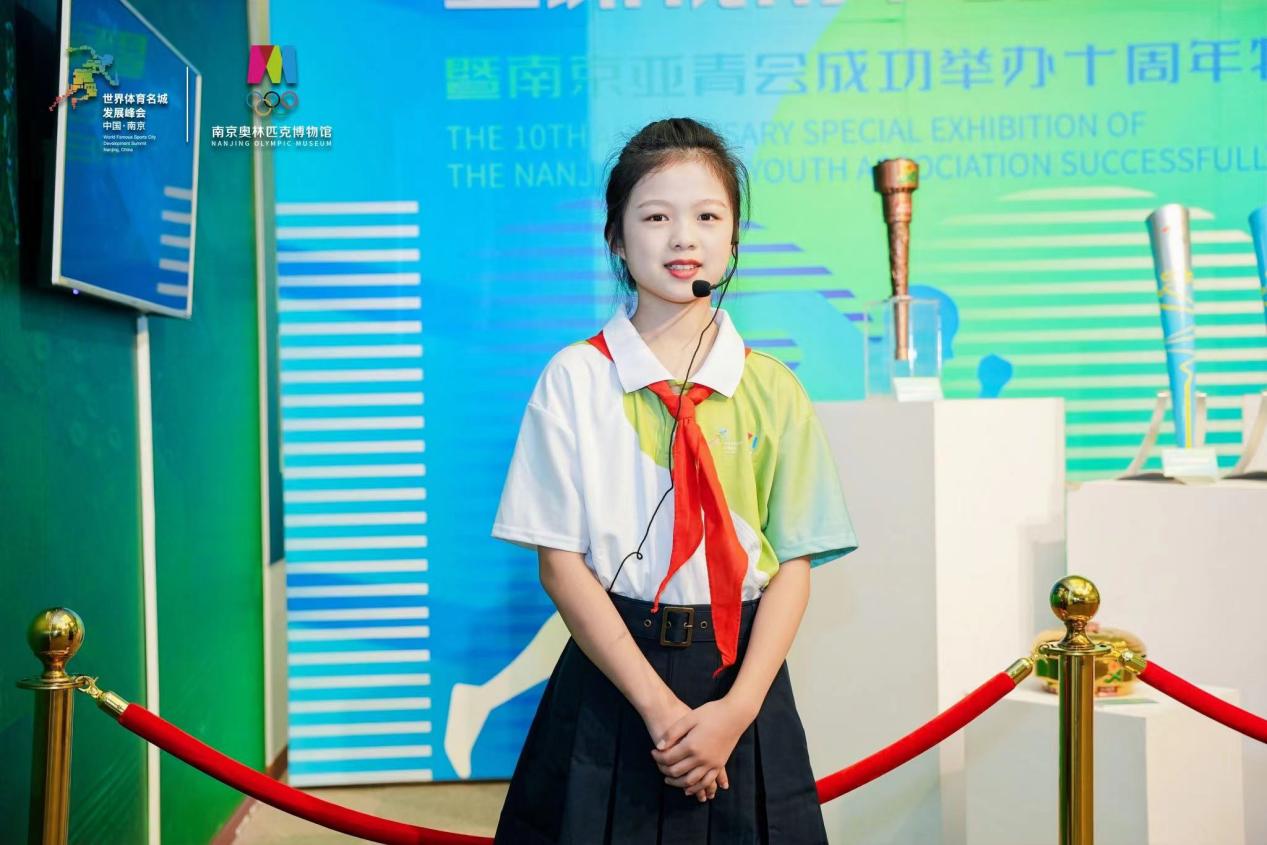 王梓晴、印轩宁、徐沐苒同学担任了今天启动仪式中《走向辉煌——亚洲视角下不同中国体育发展,暨南京亚青会成功举办十周年特展》的小小讲解员。现场观众以时间为脉络,通过图文资料、实物展品、视频等形式,从中国近现代体育萌芽到初步参与亚洲体育事业开始,了解了亚洲视角下中国体育永不服输、勇攀高峰的奋斗历程。作为与青奥一起长成的“亚青宝宝”,他们大方自信地讲解,展现了南外青奥村小学少先队员的风采,获得了现场嘉宾的一致好评。